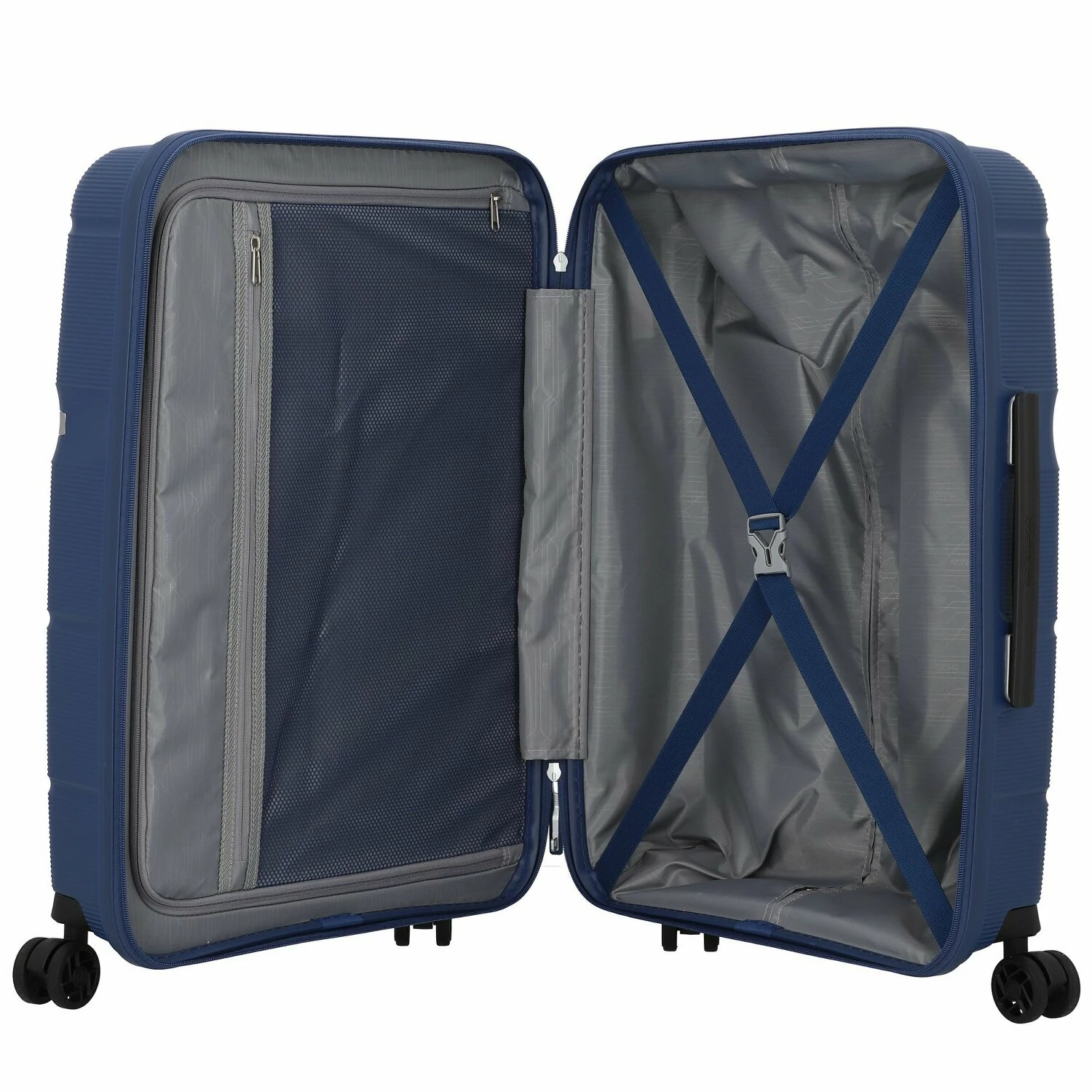 Modischer Trolley von American Tourister aus robustem Polypropylen mit Teleskopgriff, vier stabilen Doppelrollen und einem großem Hemdenfach. Der zuverlässige Begleiter für die nächste Reise.
