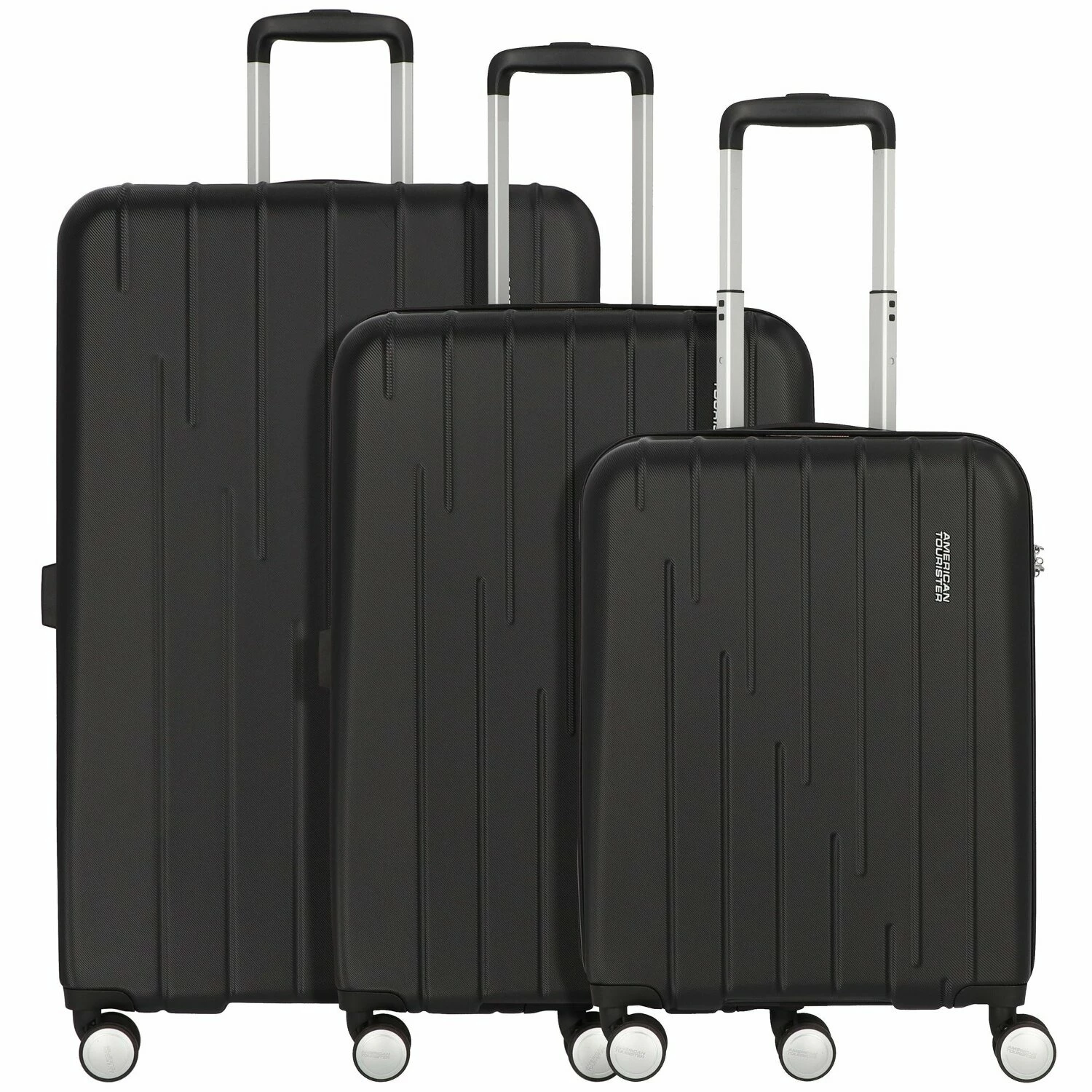 Praktisches Trolleyset von American Tourister überzeugt durch stilsicheres Design und hohe Verarbeitungsqualität und bietet mit einem geräumigen Hauptfach Ordnung und reichlich Platz. Vier geräuscharme Rollen bieten gute Transportfähigkeit. Das Teleskopgestänge ist mehrfach arretierbar und das TSA-Schloss sorgt für die nötige Sicherheit des Gepäckinhaltes. – Maße: 40 cm x 20 cm x 55 cm / 45 cm x 27 cm x 67 cm / 50 cm x 30 cm x 77 cm – Volumen: 31,5 L / 65 L / 98 L – Gewicht: 2,51 kg / 3,40 kg / 4,11 kg