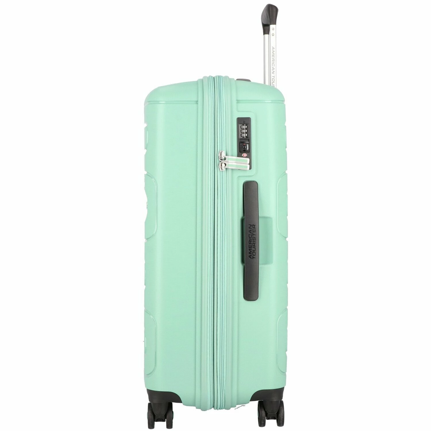 Modischer Trolley von American Tourister aus robustem Polypropylen mit Teleskopgriff, vier stabilen Doppelrollen, großem Hemdenfach, drei weiteren Nebenfächern und Kreuzpackgurt. Er ist über eine Dehnfalte erweiterbar. Der zuverlässige Begleiter für die nächste Reise.