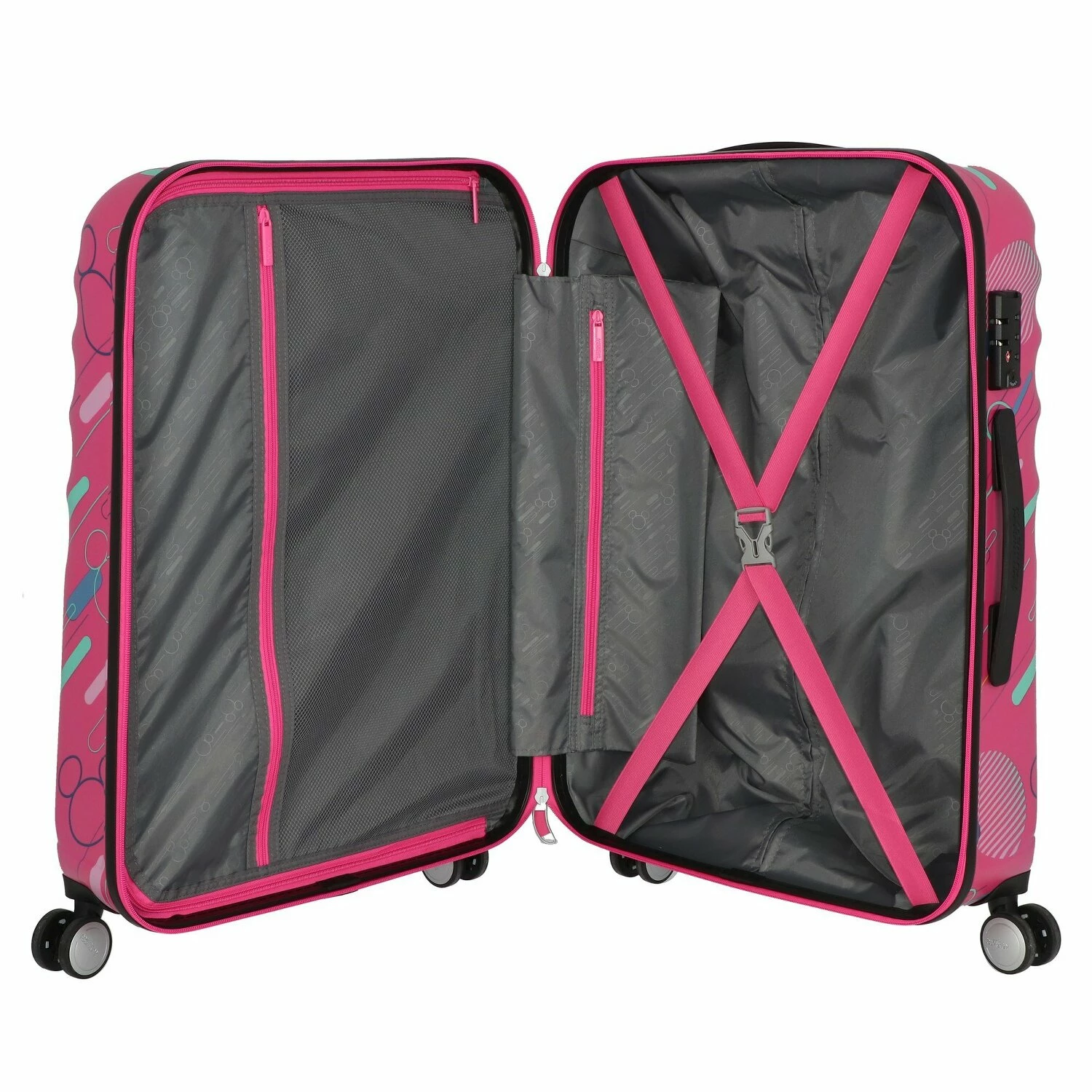 Süßes Design, hochwertige Materialien und eine durchdachte Innenaufteilung machen diesen Trolley der Marke American Tourister zum perfekten Begleiter für die nächste Reise. Mit vier stabilen Doppelrollen, großem Hauptfach mit Kreuzpackgurt, Hemdenfach und ein Reißverschlussfach.