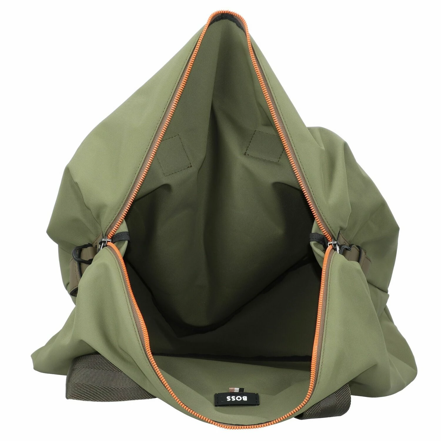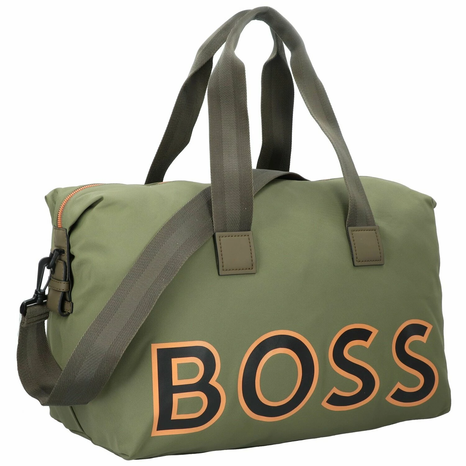 Moderne Reisetasche der Marke Boss mit großem Logo auf der Front. In dem geräumigen Hauptfach können Sie ihre Gegenstände wie Kleidung gut organisiert aufbewahren. Die Tasche kommt mit einem abnehmbaren Umhängeriemen. Der perfekte Begleiter für die nächste Reise.