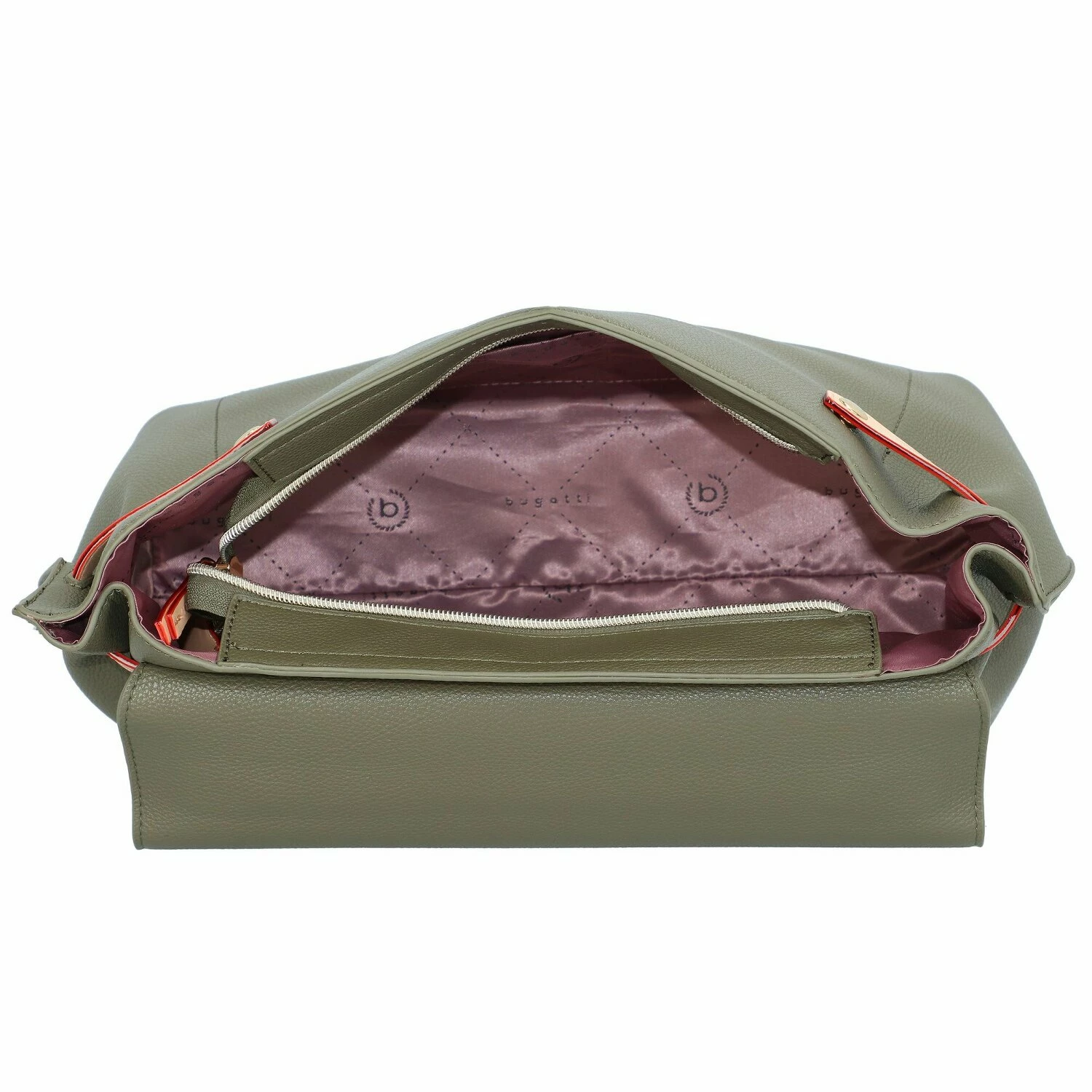 Schöne Handtasche mit Henkel von Bugatti. Die Tasche bietet viel Platz für alle wichtigen Wertgegenstände und hat mehrere Innenfächer, damit Sie auch immer alles griffbereit haben. Mit dem abnehmbaren Riemen können Sie die Tasche auch als Umhängetasche tragen. Die seitlichen Riemen können per Druckknopf geöffnet und geschlossen werden, je nachdem wie viel Platz Sie gerade benötigen. Der perfekte Begleiter im Alltag für einen schicken, modernen Look.