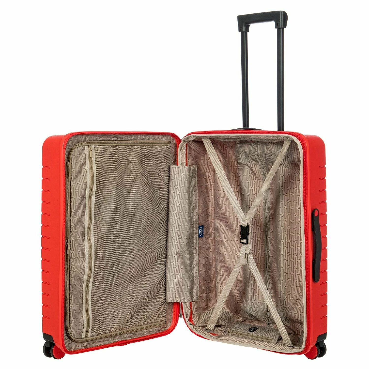 Designstarker und farbenfroher 4-Rollen Trolley von Bric’s der BY Ulisse Serie aus widerstandsfähigem Polypropylen. Der Trolley verfügt über ein geräumiges Hauptfach mit einem Kreuzpackgurt, sowie ein separat bepackbares Reißverschlussfach mit Netzfach und bietet viel Platz für ihr Gepäck. Das Volumen des Hauptfachs ist außerdem durch die Dehnfalte erweiterbar. Zusätzlich ist der Trolley mit einem herausnehmbaren Schuh- und Wäschebeutel ausgestattet. Vier geräuscharme und in alle Richtungen bewegliche Doppelrollen, arretierbarer Griff und ein integriertes TSA-Schloss für zusätzliche Sicherheit runden den Trolley ab.