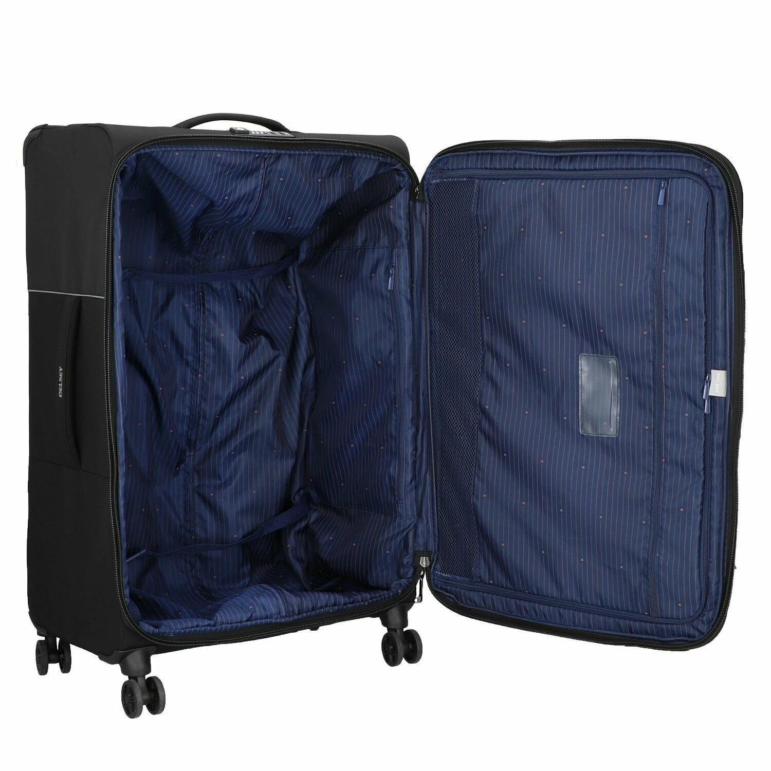 Robuster Trolley von Delsey aus der Brochant 2.0 Serie mit vier leichtgängigen Rollen in klassischem Design. Mit einem TSA-Schloss und patentierten ultra-sicheren Verschlusssystem bietet dieser Trolley die maximale Sicherheit und minimale Aufbruchgefahr durch Öffnen des Reißverschlusses. Das Reißverschlussfach auf der Vorderseite verfügt über genug Platz für Reiseunterlagen und Wertsachen. Mittels Reißverschluss kann das Volumen des Koffers erweitert werden, dadurch wird dieser Koffer immer ein zuverlässiger Begleiter auf Reisen.