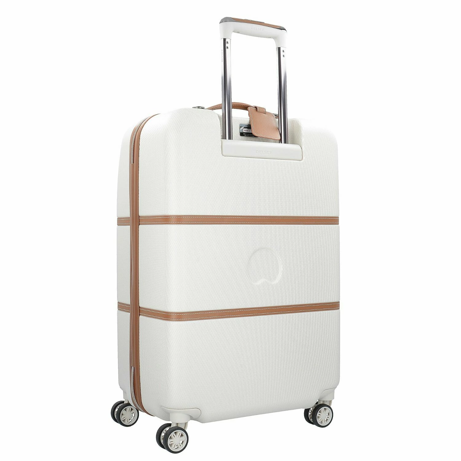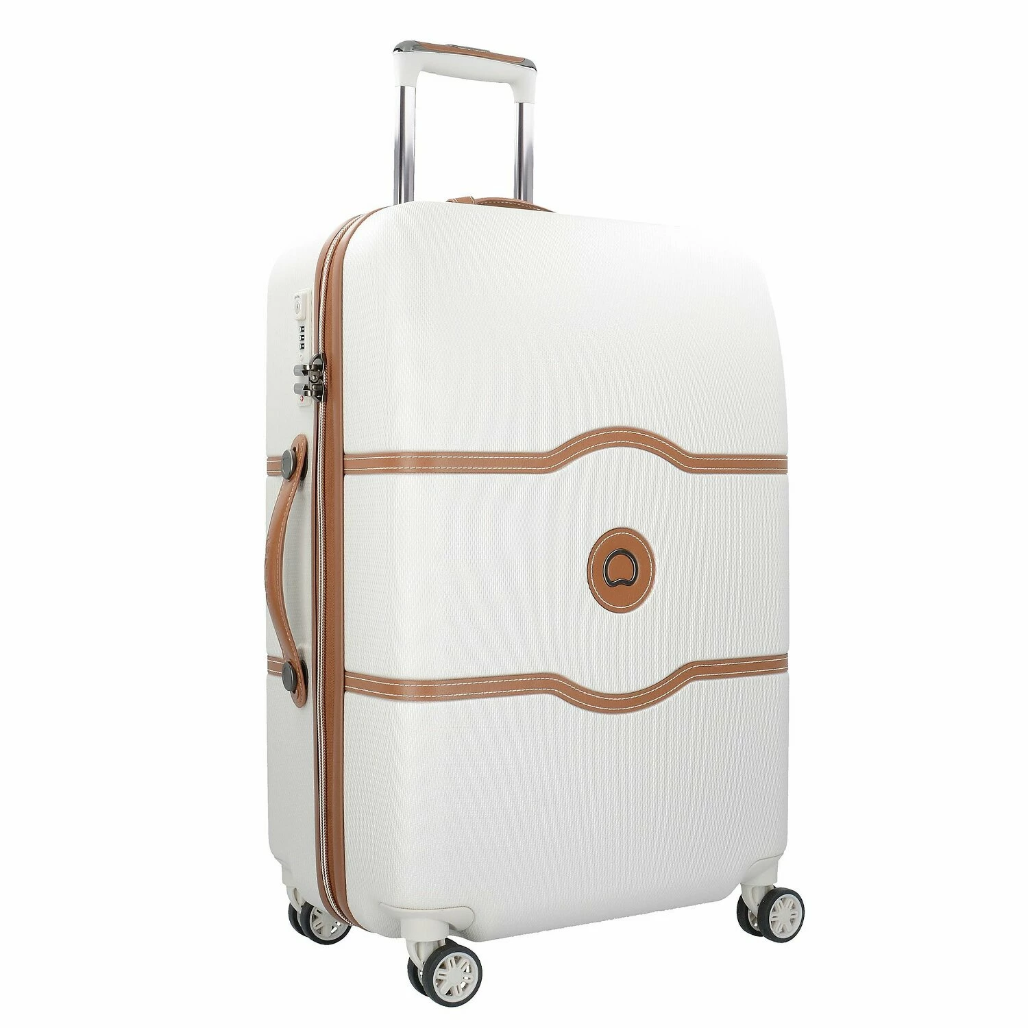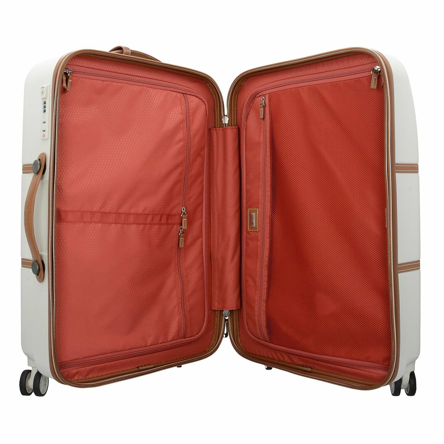 Luxuriöser Trolley der Marke Delsey mit 4 Doppelrollen und arretierbarem Teleskopgriff. Der Trolley überzeugt nicht nur durch sein elegantes, klassisches Koffer-Design, sondern auch durch seine hohe Verarbeitungsqualität, Stabilität und Funktionalität. Er verfügt über ein geräumiges Hauptfach und ein großes Hemdenfach mit je einem Kreuzpackriemen, ein Netzfach und zwei weitere Reißverschlussfächer und und ist durch ein TSA-Schloss gesichert. So lässt sich komfortabel und stilvoll reisen.
