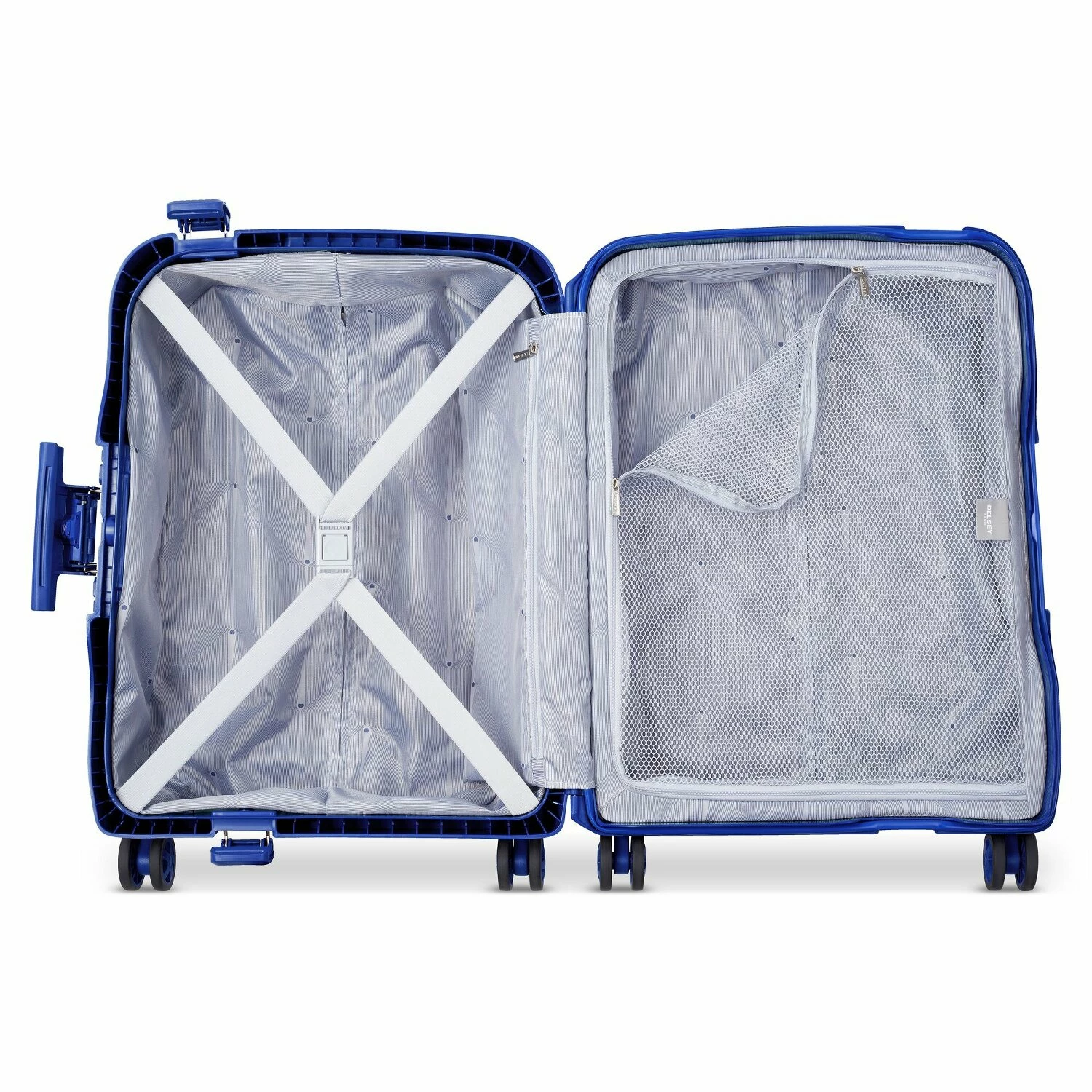Der Hartschalen-Trolley der Marke Delsey aus äußerst robustem Polypropylen mit TSA- und Zahlenschloss für optimale Sicherheit und vier stabilen Doppelrollen. Zudem sorgt eine Gummidichtung dafür, dass der Trolley vor Nässe geschützt ist. Mit einem Netzfach, Reißverschlussfach und Packriemen ist man perfekt ausgestattet um sein Gepäck übersichtlich zu verstauen.