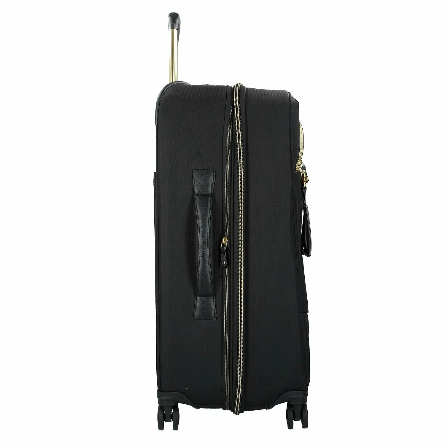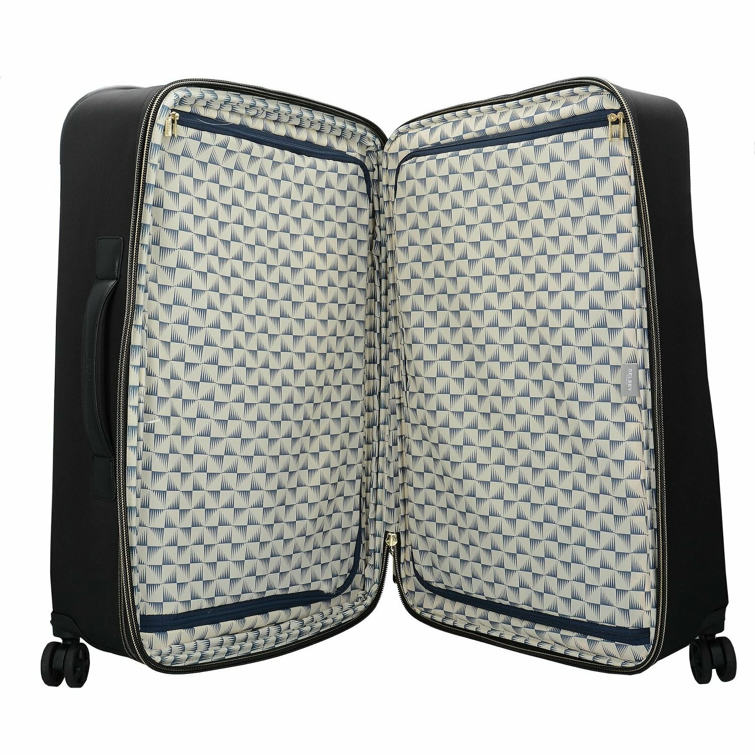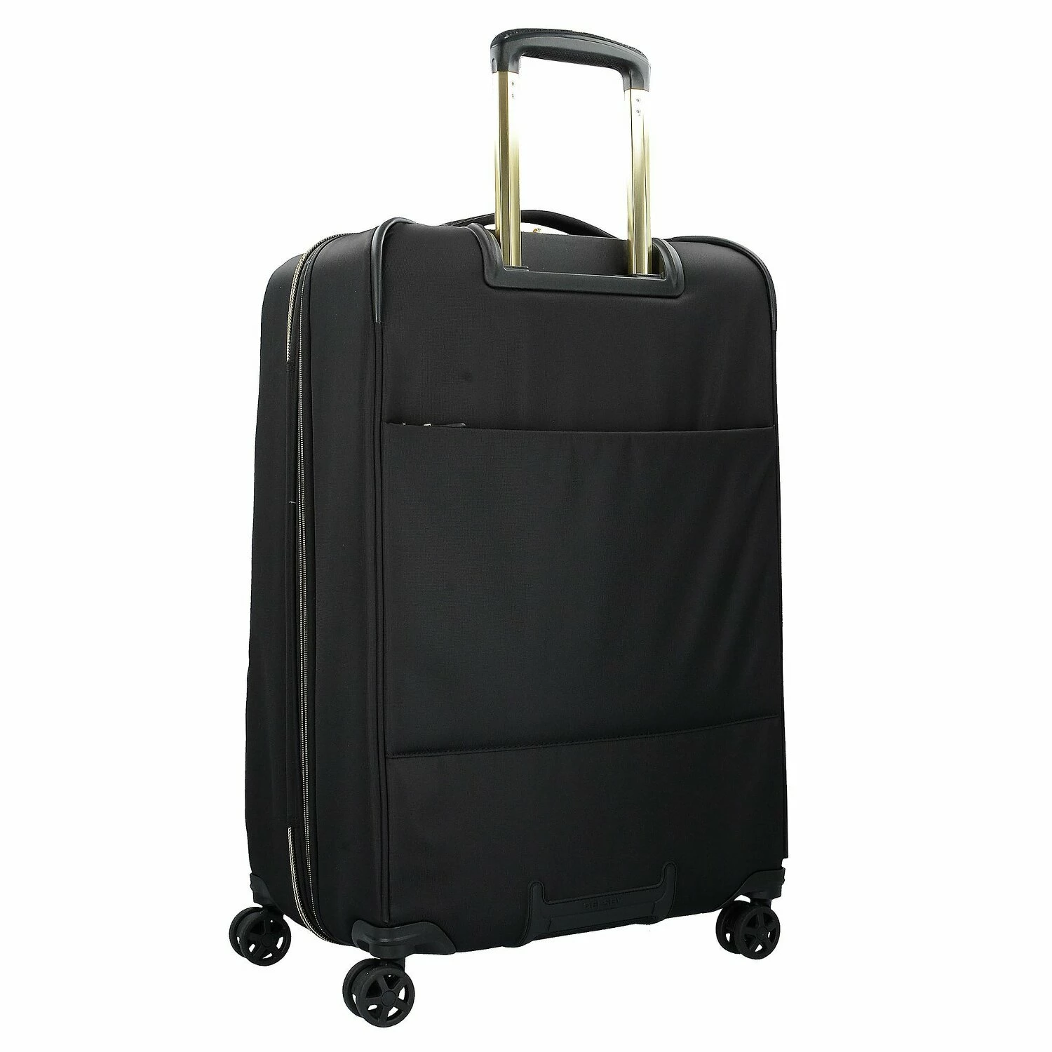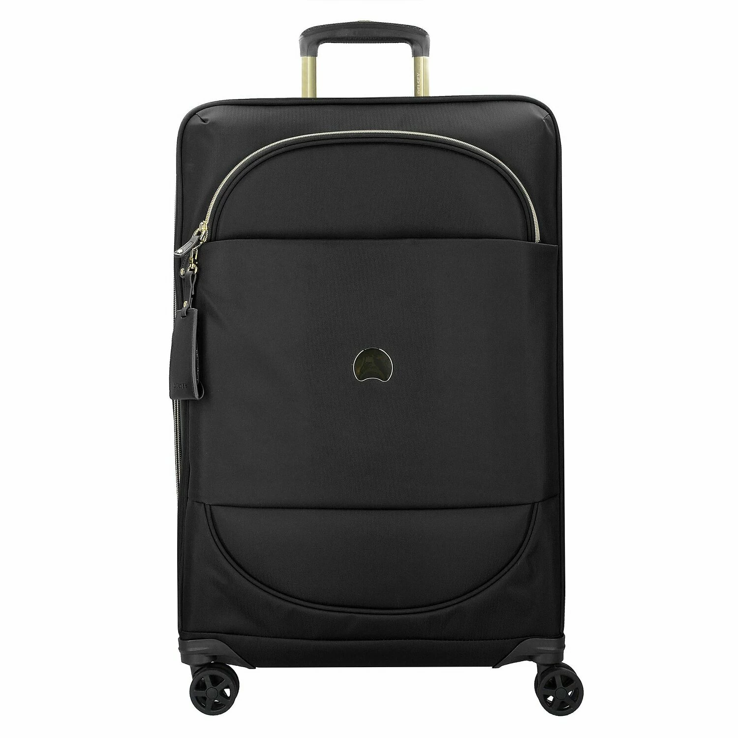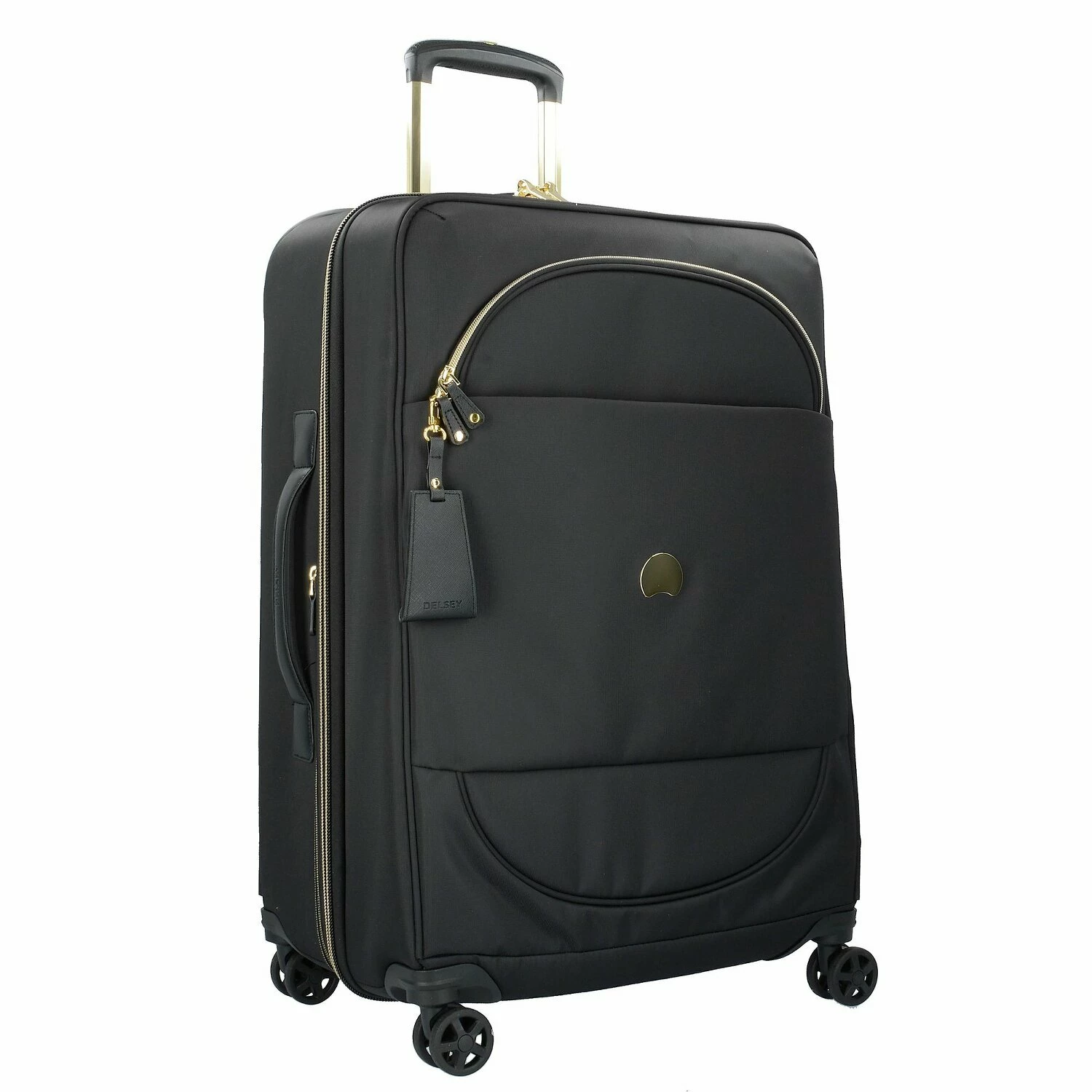 Luxuriöser Trolley der Marke Delsey mit 4 Doppelrollen, arretierbarem Teleskopgriff und TSA-Zahlenschloss. Der Trolley überzeugt nicht nur durch sein formschönes Design und edle Akzente aus Metall, sondern auch durch seine hohe Verarbeitungsqualität, Stabilität und Funktionalität. Er verfügt über ein geräumiges Hauptfach und ein großes Hemdenfach mit je zwei Spanngurten sowie drei weitere Fächer auf Vorder- und Rückseite. Zudem ist er über eine Dehnfalte erweiterbar. So lässt sich komfortabel und stilvoll reisen.