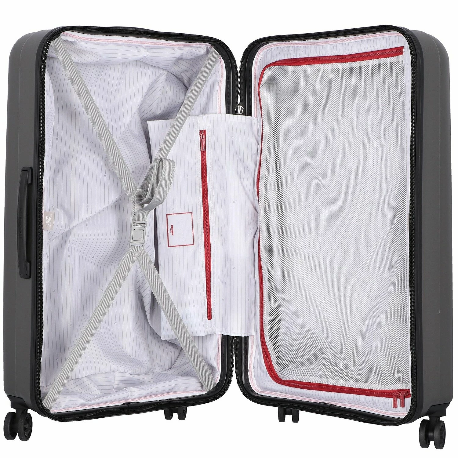 Robuster Trolley von Delsey der Segur 2.0 Serie aus Polycarbonat. Das geräumige Hauptfach bietet viel Platz und ist dank des Raumteilers und des Kreupackgurts gut organisiert. Mit den vier Leichtlaufrollen ist der Koffer besonders flexibel und lässt sich bequem in alle Richtungen schieben und ist durch die gerillte Oberfläche besonders robust und solide.