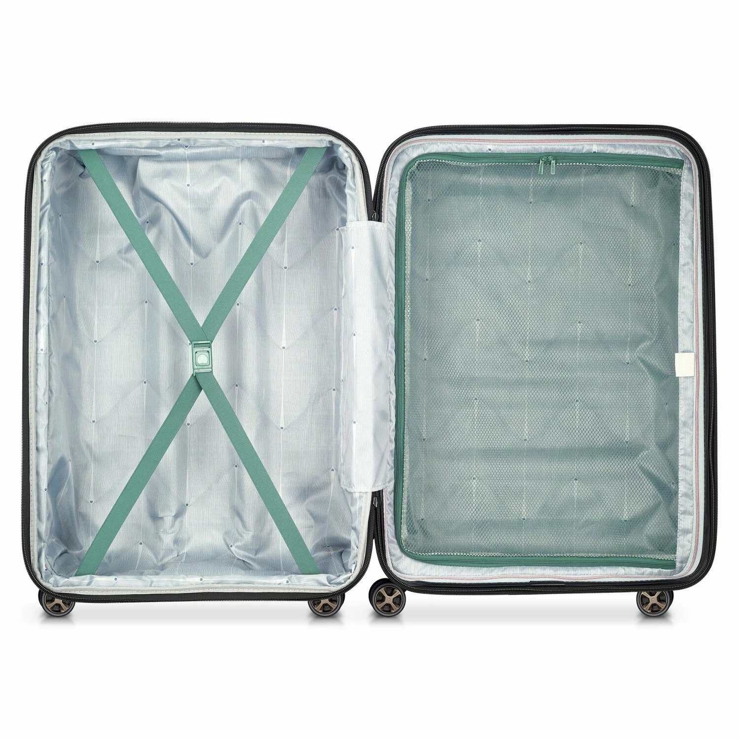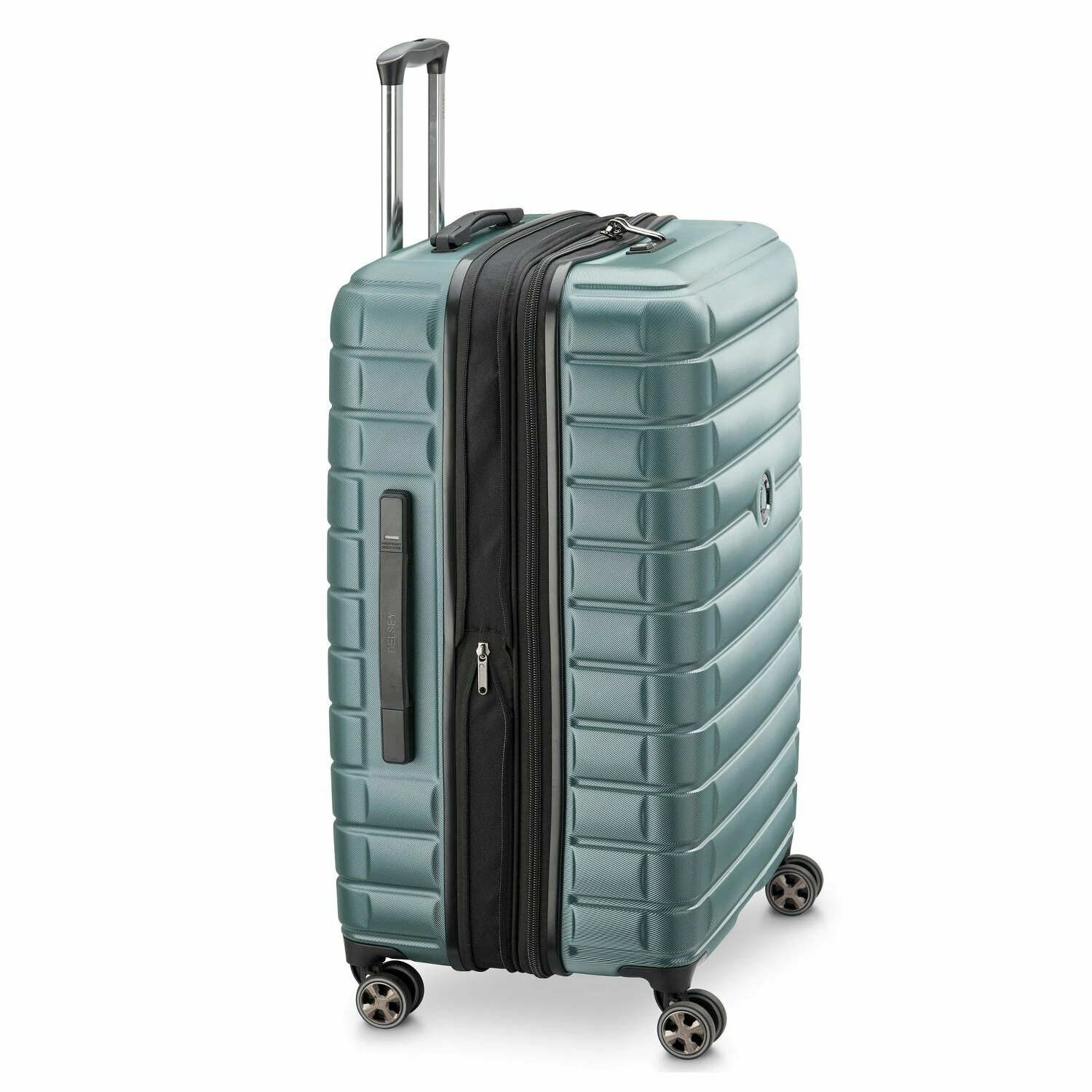 Designstarker Trolley aus der Delsey Shadow 5.0 Serie ist durch die robuste Hartschale aus Polycarbonat auch gegen kleinere Stöße geschützt. Mit zahlreichen Fächern und Taschen und einem großen Hauptfach mit Packriemen bietet der Trolley genügend Platz auf Reisen. TSA-Schloss für mehr Sicherheit und problemlose Gepäckkontrolle in den USA sowie praktische Dehnfalte für die Erweiterung des Packvolumens runden das Produkt ab.