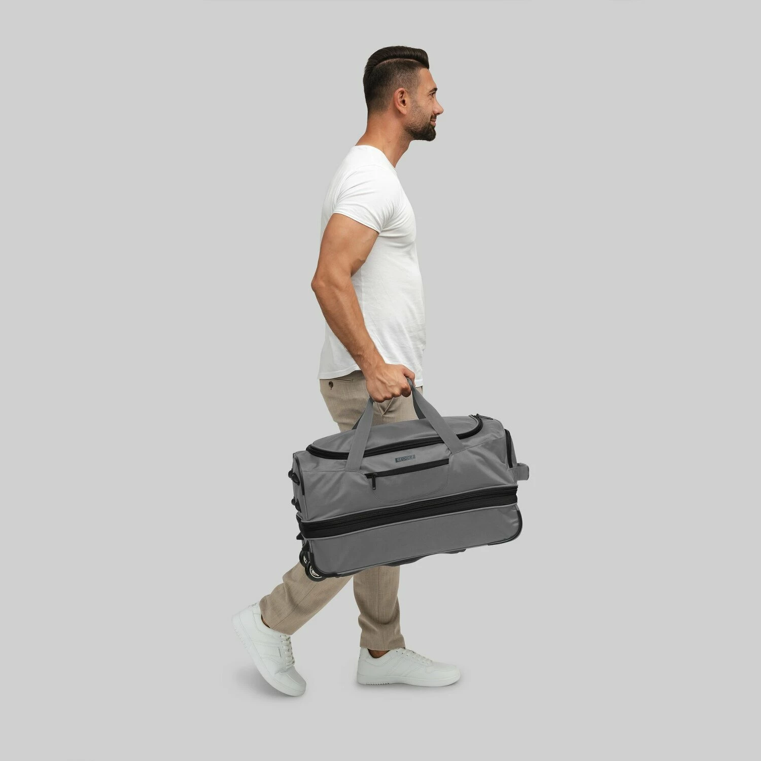 Die Duffle Essentials von Redolz ist ein stylischer Reisebegleiter. Designstark, mit hochwertigen Materialien und durchdachter Ausstattung bietet die Reisetasche einen hohen Reisekomfort und lässt keine Wünsche offen. Die Außenhülle aus Polyester macht die Tasche flexibel und robust zugleich, so ist ihr Gepäck auf Reisen optimal geschützt. Das intelligente Ausstattung mit einem Netzfach, einem von außen zugänglichen Reißverschlussfach und einem Schuhfach ermöglicht einfach und schnell die Organisation von Reiseutensilien und Kleidungsstücken. Außerdem ermöglicht eine Dehnfalte bei Bedarf eine Volumenvergrößerung. Die beiden widerstandsfähigen Rollen sind geräuscharm und leichtlaufend. Dadurch ist auch eine schwer beladene Tasche keine Belastung während Ihrer Reise.