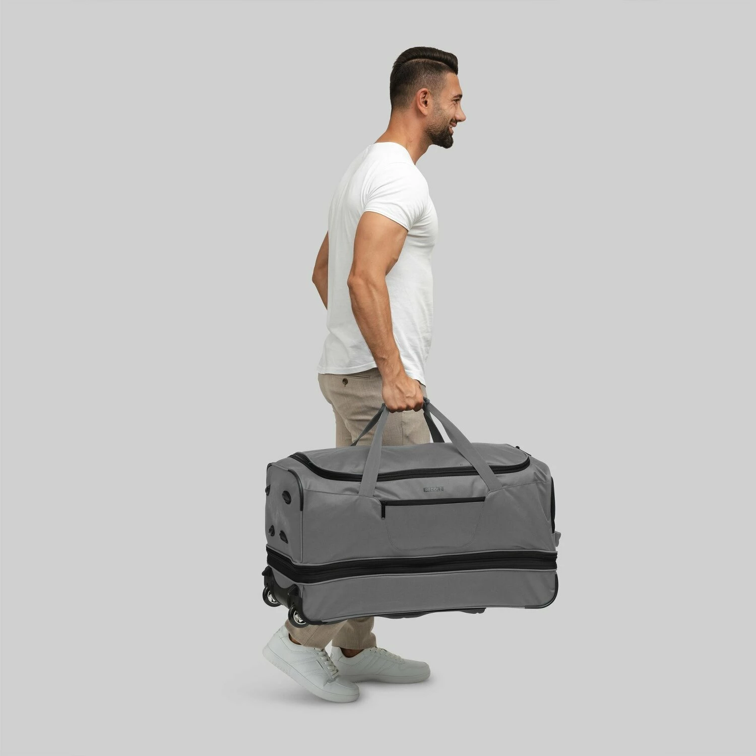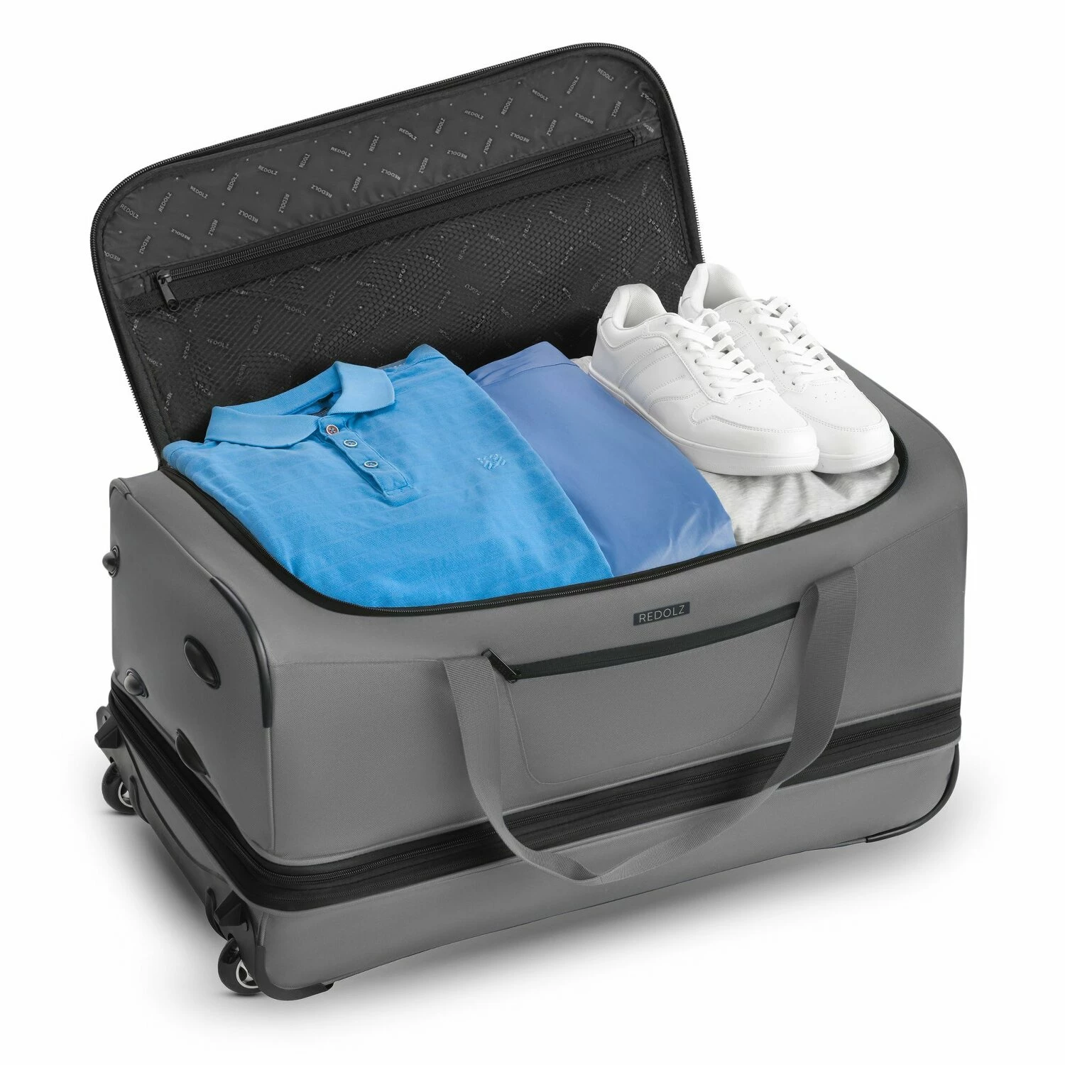 Die Duffle Essentials von Redolz ist ein stylischer Reisebegleiter. Designstark, mit hochwertigen Materialien und durchdachter Ausstattung bietet die Reisetasche einen hohen Reisekomfort und lässt keine Wünsche offen. Die Außenhülle aus Polyester macht die Tasche flexibel und robust zugleich, so ist ihr Gepäck auf Reisen optimal geschützt. Das intelligente Ausstattung mit einem Netzfach, einem von außen zugänglichen Reißverschlussfach und einem Schuhfach ermöglicht einfach und schnell die Organisation von Reiseutensilien und Kleidungsstücken. Außerdem ermöglicht eine Dehnfalte bei Bedarf eine Volumenvergrößerung. Die beiden widerstandsfähigen Rollen sind geräuscharm und leichtlaufend. Dadurch ist auch eine schwer beladene Tasche keine Belastung während Ihrer Reise.