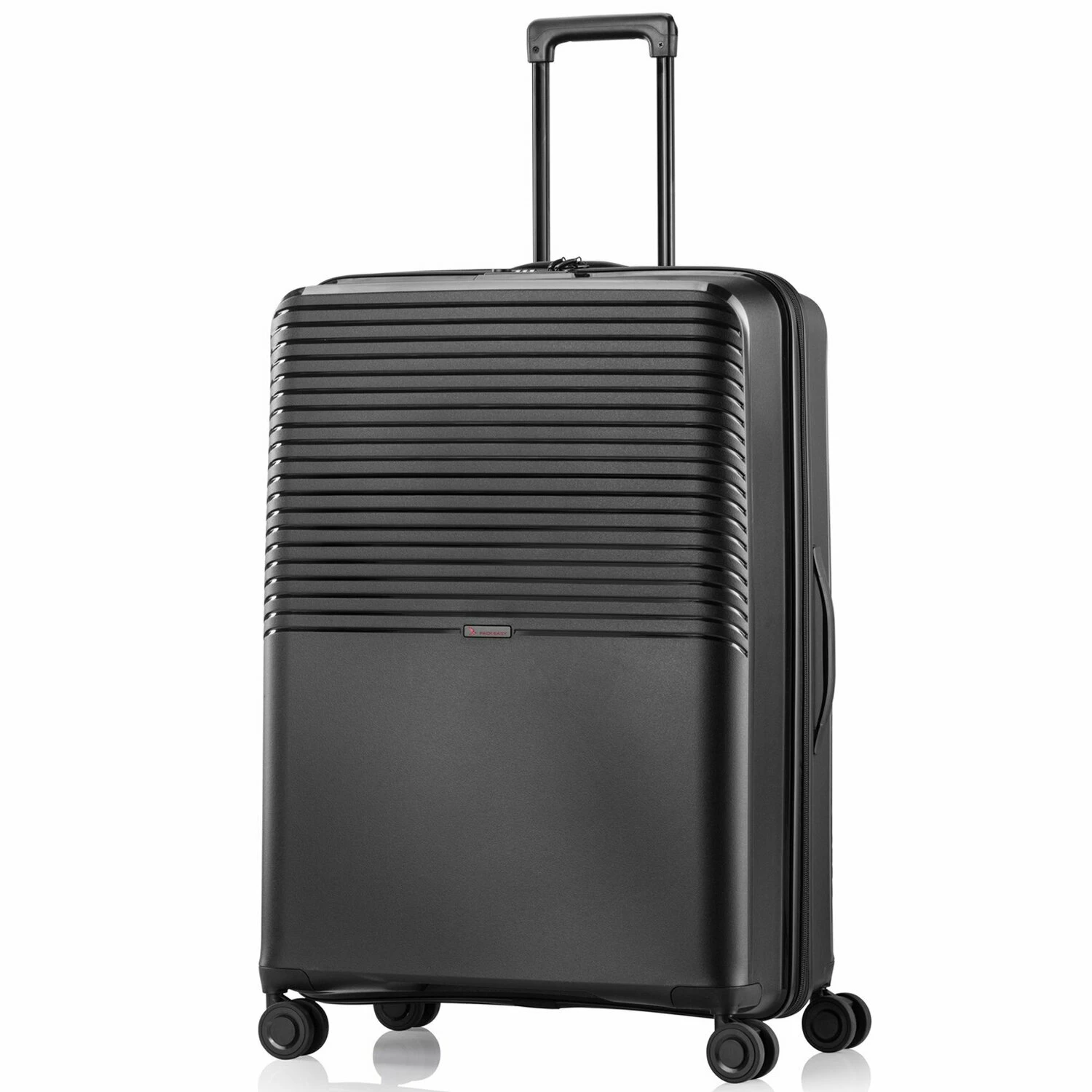 Stilsicherer und praktischer 4-Rollen Trolley. Das geräumige Hauptfach bietet Platz für allerlei Gepäckstücke und ist mit einem Kreuzpackgurt und mehreren Reißverschlussfächern gut organisiert. Zudem verfügt der Trolley über ein Wäschefach um schmutzige Wäsche besser von sauberer Wäsche zu trennen. Zusätzlich ausgestattet mit einem integrierten TSA-Schloss für mehr Sicherheit und einer Dehnfalte zur Erweiterung des Gepäckvolumens von 117 auf 137 Liter.