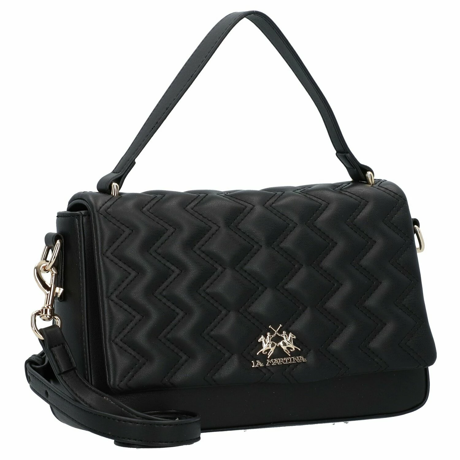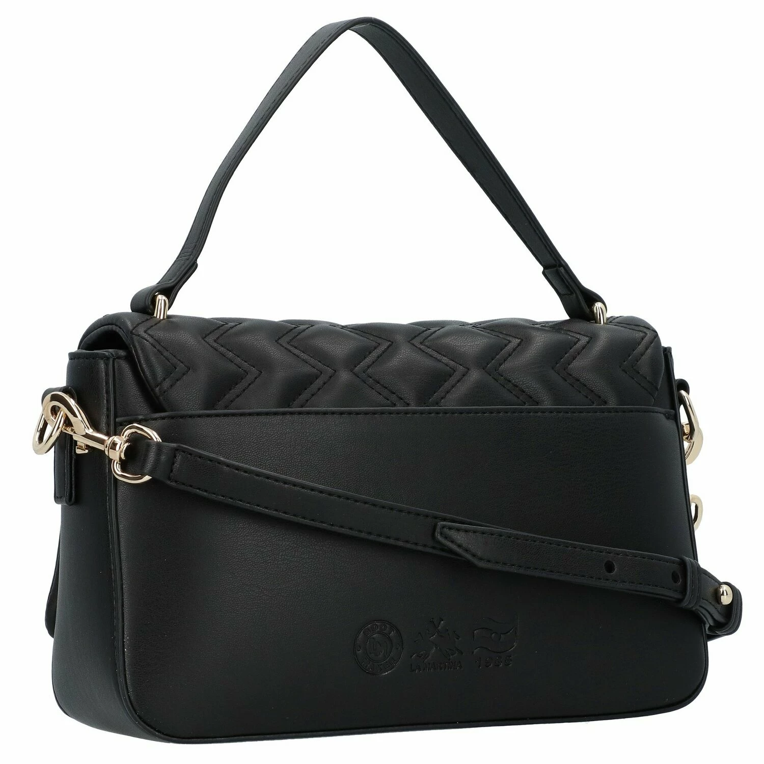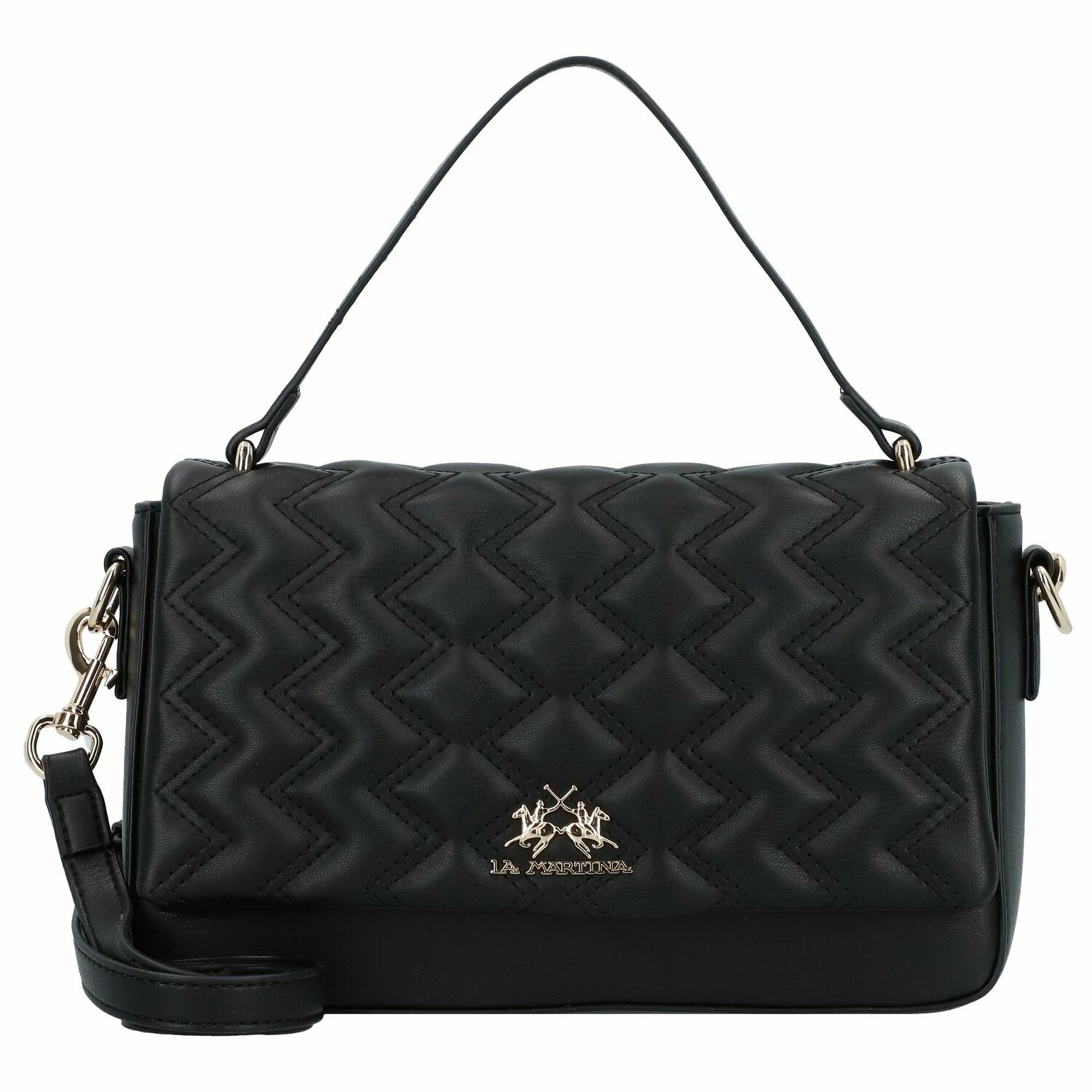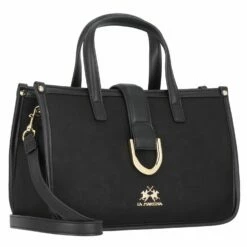 Elegante, formschöne Henkelasche von La Martina mit dem für die Marke bekannten Polo-Emblem auf der Frontseite. Die geräumigen Hauptfächer, diverse Fächer für bessere Organisation und der abnehmbare Umhängeriemen machen diese Tasche vielseitig einsetzbar, sei es fürs Büro oder den nächsten Ausflug in die City.