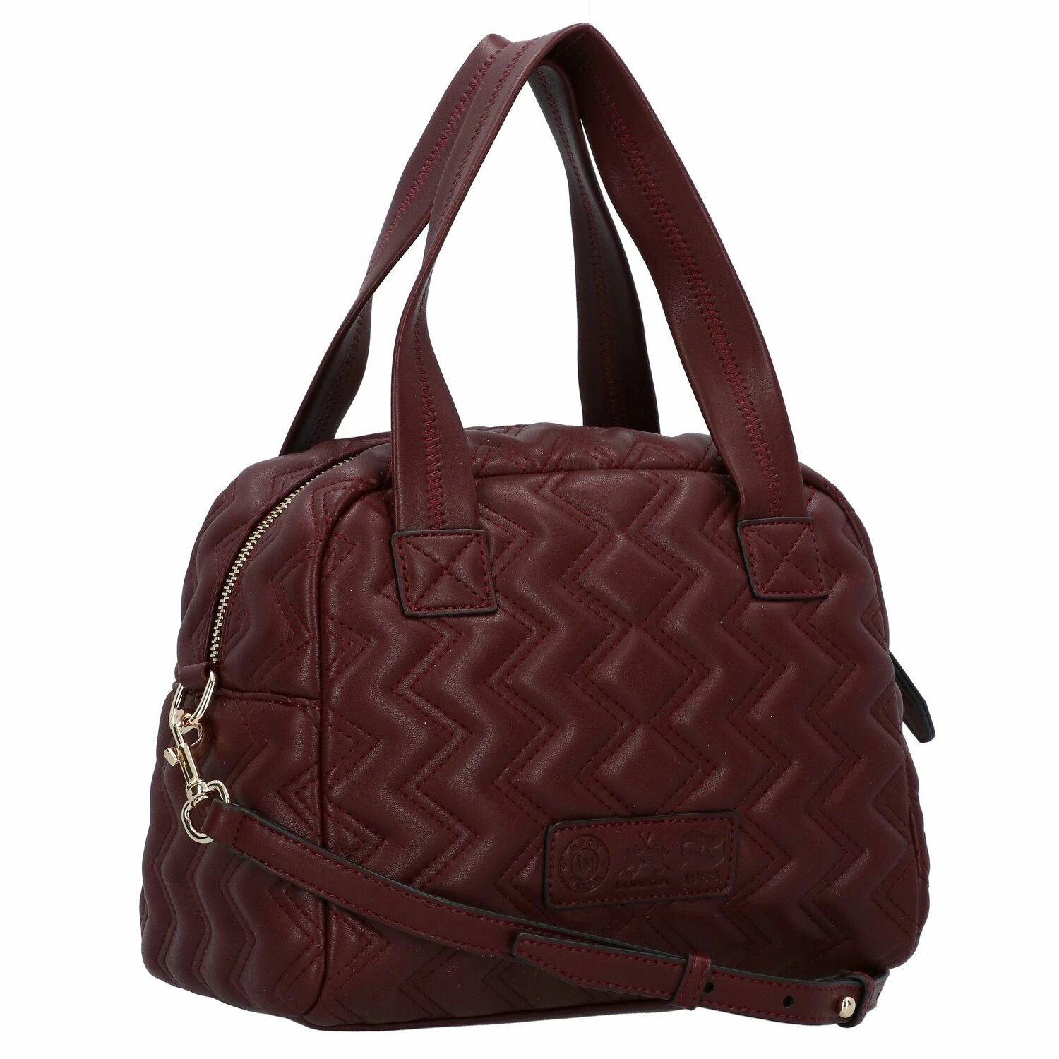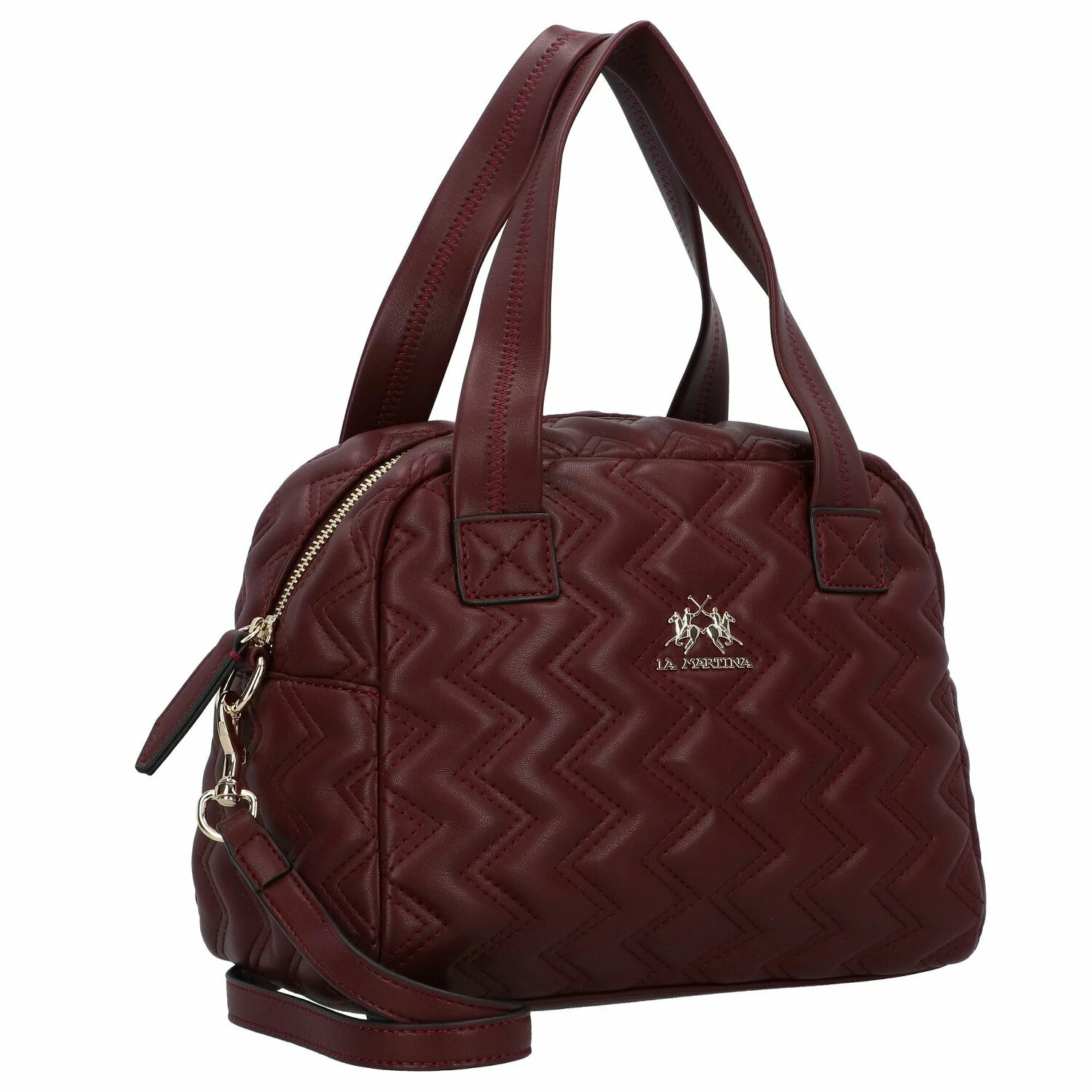 Modisch elegante Handtasche von La Martina aus gestepptem Kunstleder und goldfarbigen Elementen. Ein Reißverschluss und ein Steckfach sorgen für eine bessere Übersicht und Struktur im Tascheninneren. Dank des Riemens lässt sich die Tasche auch einfach als Umhängetasche tragen. Ein stylisches Accessoire im coolen Look und ein Begleiter für viele Gelegenheiten.