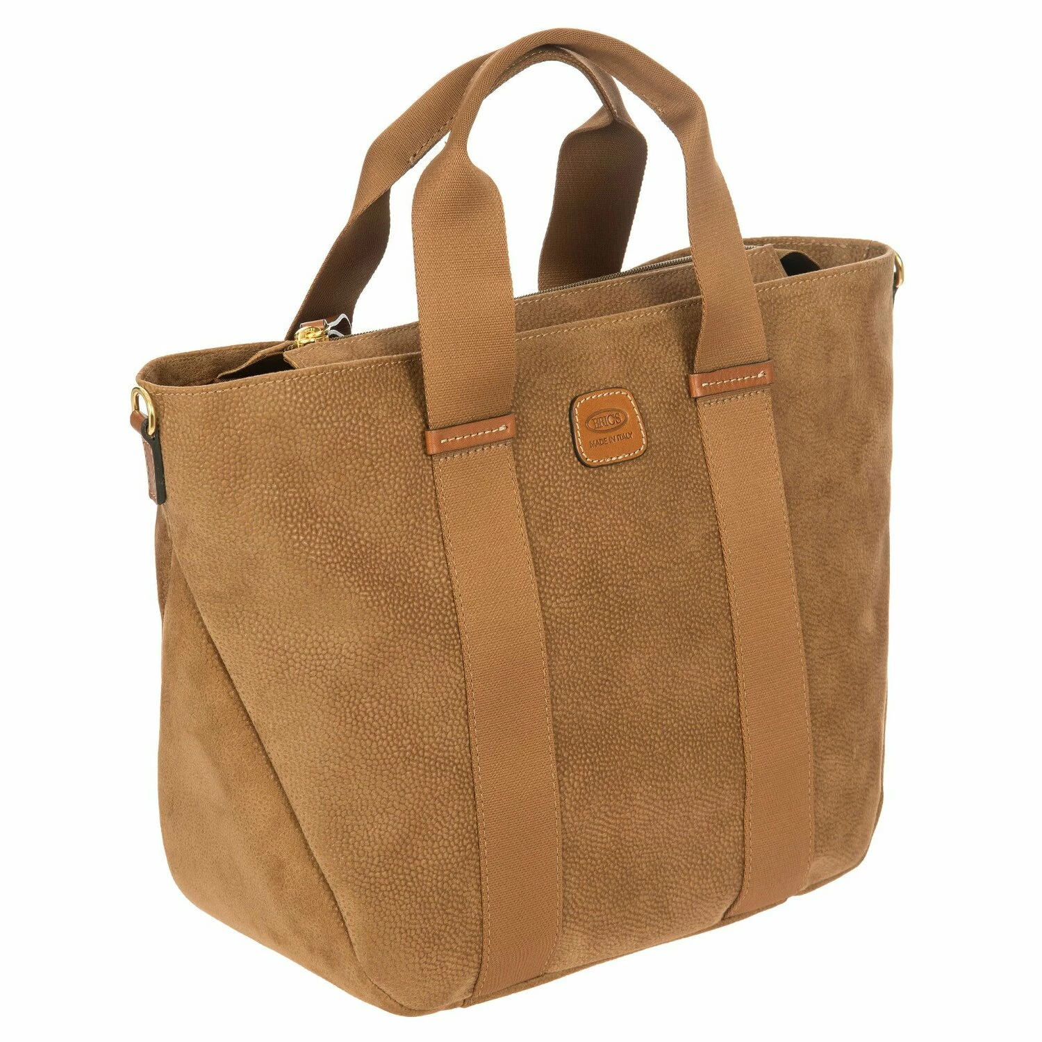 Fabelhafte Schopper Tasche von Bric’s aus hochwertigem Kunstleder im Wildledereffekt mit Details aus echtem Leder. Der abnehmbare Schultergurt gibt Ihnen eine weitere Tragevariante, sollten Sie beide Hände frei haben wollen. Diese Tasche ist ein toller Begleiter für den Ausflug in die City oder den Tag im Büro.