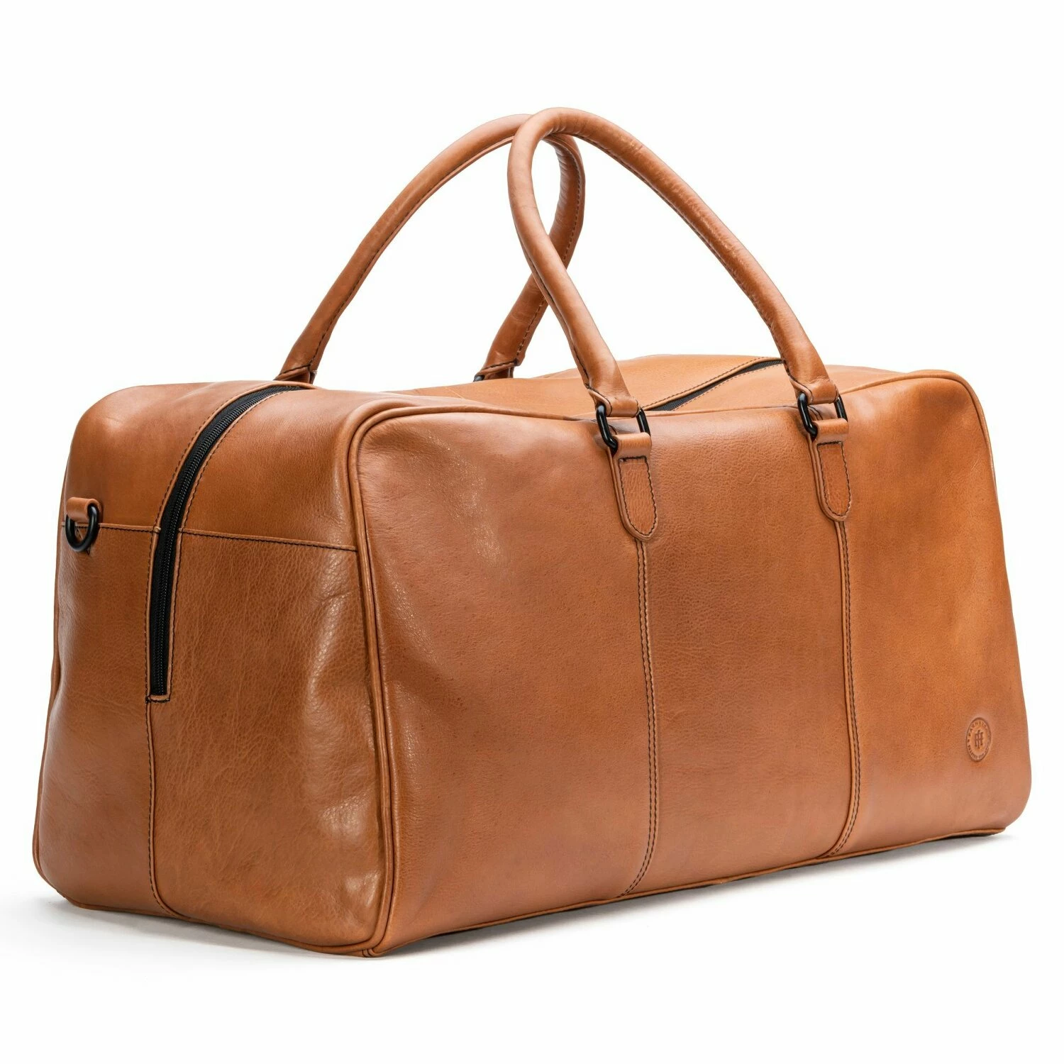 Wertige Weekender Reisetasche von Farmhood aus Leder mit einer tollen Innenausstattung. Zwei Steckfächer und ein Reißverschlussfach sorgen für eine gute Übersicht und Struktur im Tascheninneren. Ein Steckfach auf der Vorderseite bringt zusätzlichen Stauraum.