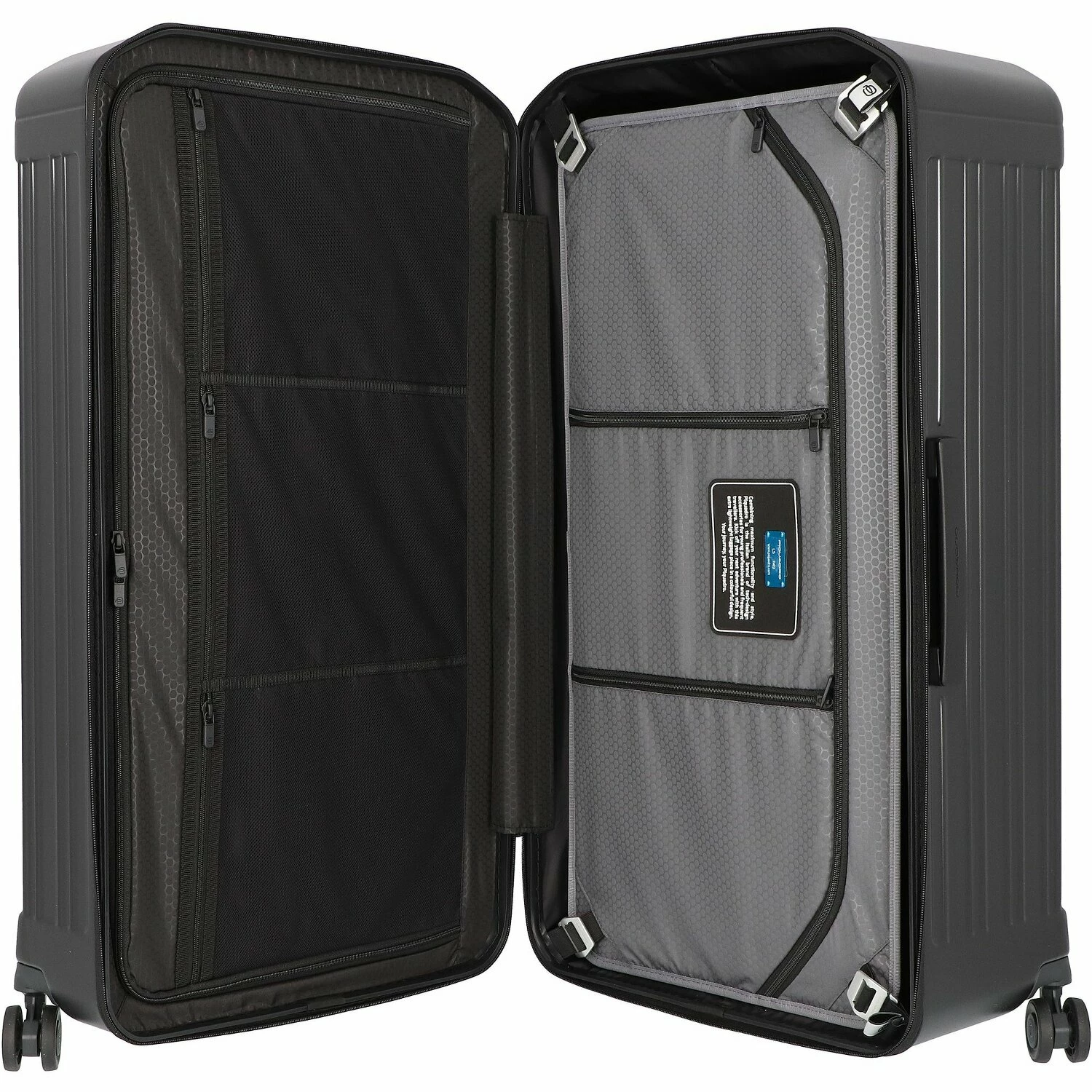 Hochwertiger Trolley von Piquadro der PQ-Light Serie aus robustem Polycarbonat in stylischem Design. Der Trolley bietet durchdachte Funktionalität und viel Stauraum mit einem geräumigen Hauptfach und separat bepackbarem Wäschefach. Vier leise und leicht zu manövrierende Rollen, integriertes TSA-Schloss für mehr Sicherheit runden das Produkt ab.