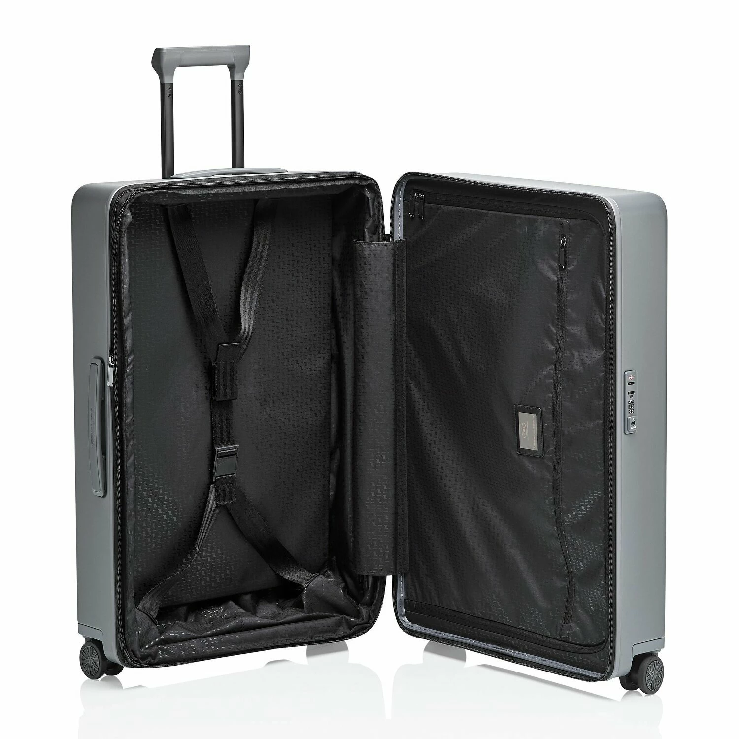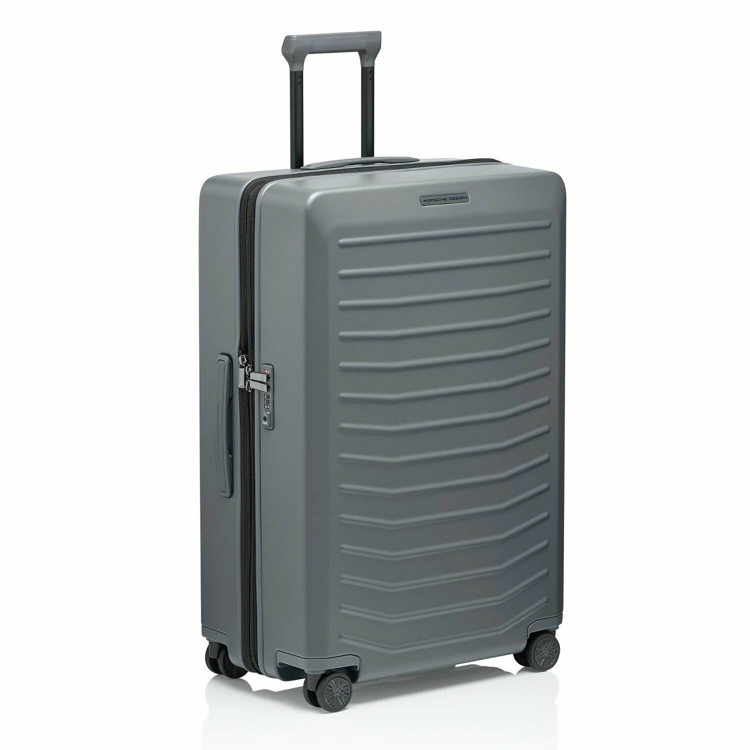 Der luxuriöse 4-Rollen Trolley von Porsche Design der Roadster Serie ist wie gewohnt ein sehr eleganter Wegbegleiter des Herstellers. Der Trolley verfügt über ein geräumiges Hauptfach mit Kreuzpackgurt, Packplatte und einem separat bepackbaren Mesh-Reißverschlussfach, somit bietet der Trolley viel Platz zum verstauen von Kleidungsstücken, das ist es was diesen Koffer zu was ganz besonderem macht. Die geräuscharmen und in alle Richtungen beweglichen Doppelrollen wurden speziell für einen sehr hohen Rollkomfort entwickelt. Der Trolley ist zusätzlich mit einem TSA-Schloss geschützt.