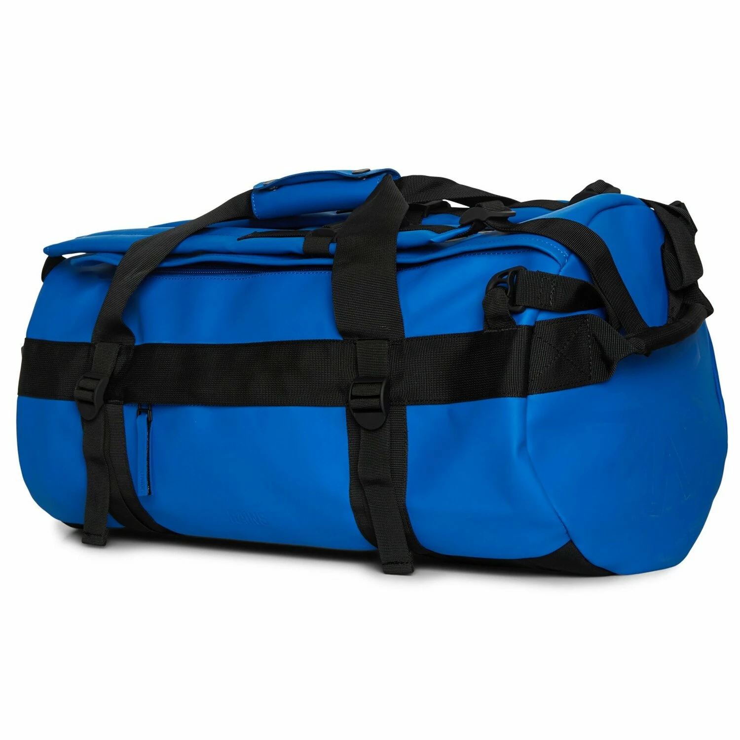 Die geräumige Weekender Reisetasche von Rains zeichnet sich durch wasserdichtes Material, kastenförmige Silhouette und sportliche Details aus. Der sportliche Look wird durch vier am Gurtband befestigte Schnallen ergänzt. Je nach Bedarf kann die Reisetasche dann entweder als Tasche oder als praktischer Rucksack getragen werden. Der ideale Begleiter auf Reisen oder zum Sport.