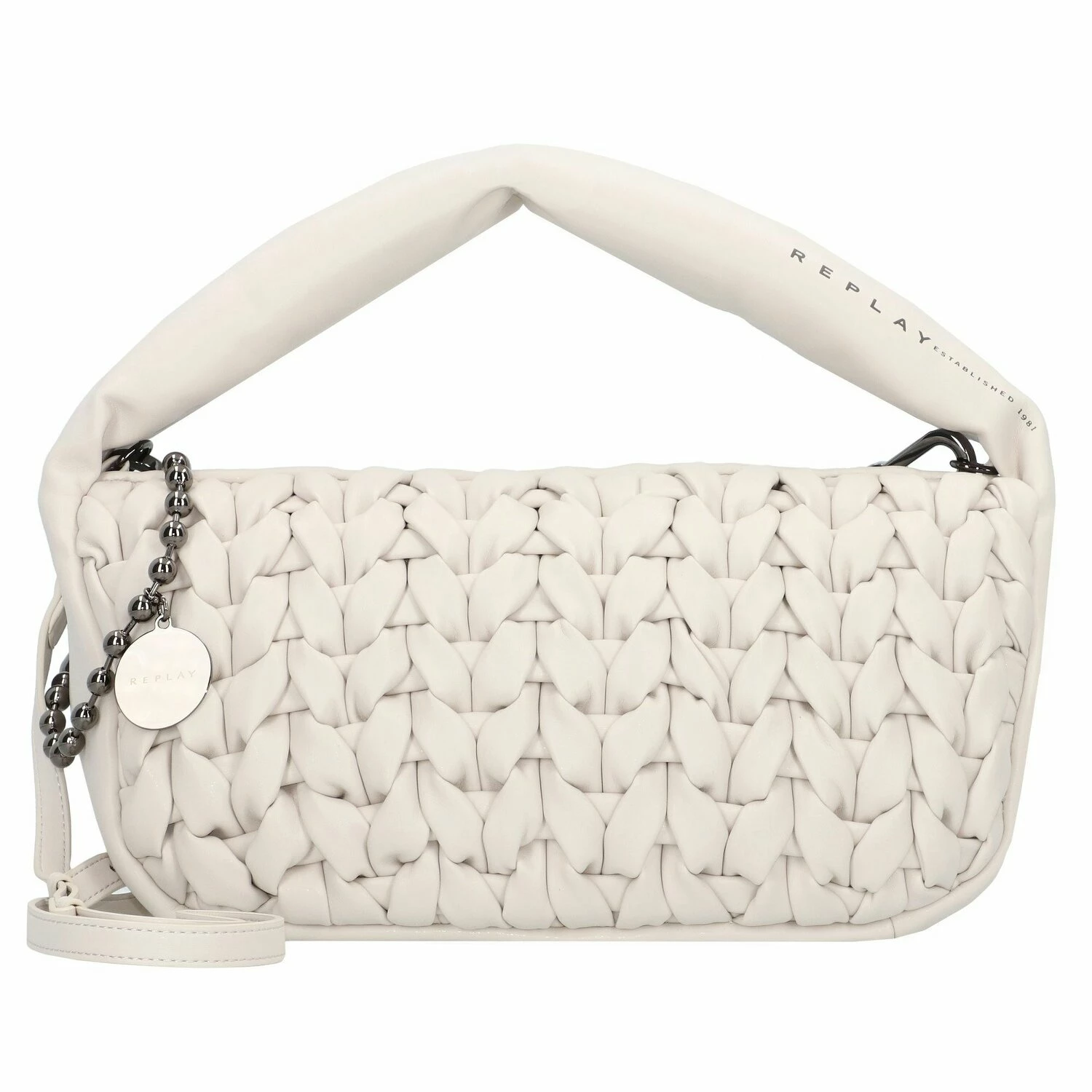 Modische Henkeltasche von Replay. Die Tasche hat ein Hauptfach mit je einem Steck- und Reißverschlussfach sowie drei Kreditkartenfächer im Inneren. Mittels längenverstell- und abnehmbaren Umhängeriemen kann sie auch über den Körper getragen werden.