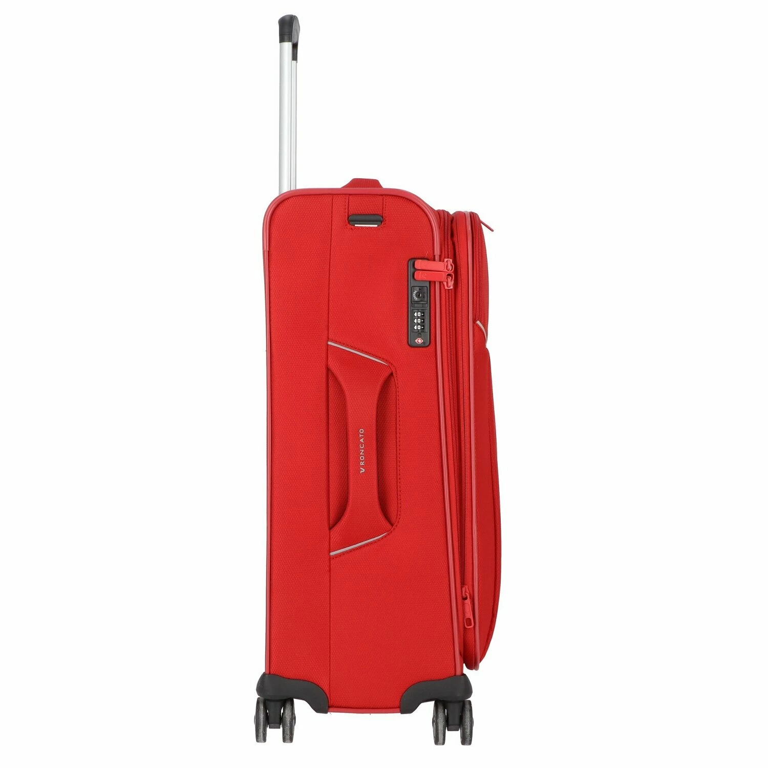 Elegantes und robustes Kofferset der Ironik 2.0 Serie von Roncato aus Nylon. Die Trolleys zeichnen sich durch formschönes Design und hohe Verarbeitungsqualität aus. Sie bieten jeweils ein geräumiges Hauptfach mit zwei Spanngurten, mehrere Reißverschlussfächer und eine Fronttasche. So lässt sich alles übersichtlich verstauen. Vier leicht zu manövrierende und geräuscharme Rollen, integriertes TSA-Schloss für mehr Sicherheit und praktische Dehnfalte zur Erhöhung der Gepäckkapazität runden das Produkt ab. Das kleinste Modell kann auch als Kabinengepäck genutzt werden. – Maße: 40 cm x 20-23 cm x 55 cm / 44 cm x 24-29 cm x 65 cm / 48 cm x 30-35 cm x 75 cm – Volumen: 40-46 L / 65-71 L / 102-119 L – Gewicht: 2,20 kg / 2,50 kg / 3,60 kg