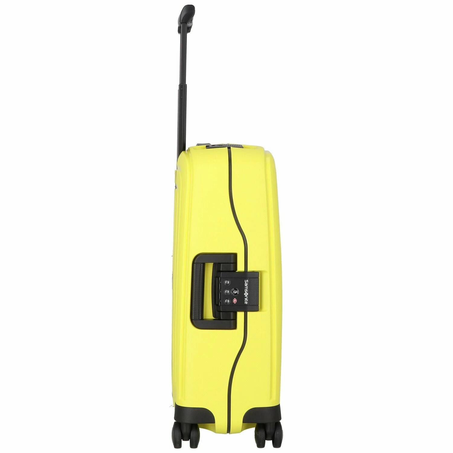 Luxuriöser Kabinentrolley der Marke Samsonite aus strapazierfähigem Polypropylen mit vier Doppelrollen und arretierbarem Teleskopgriff. Das edle Design, die hochwertige Verarbeitung und das stabile Material machen den Trolley zur optimalen Wahl für die nächste Reise.