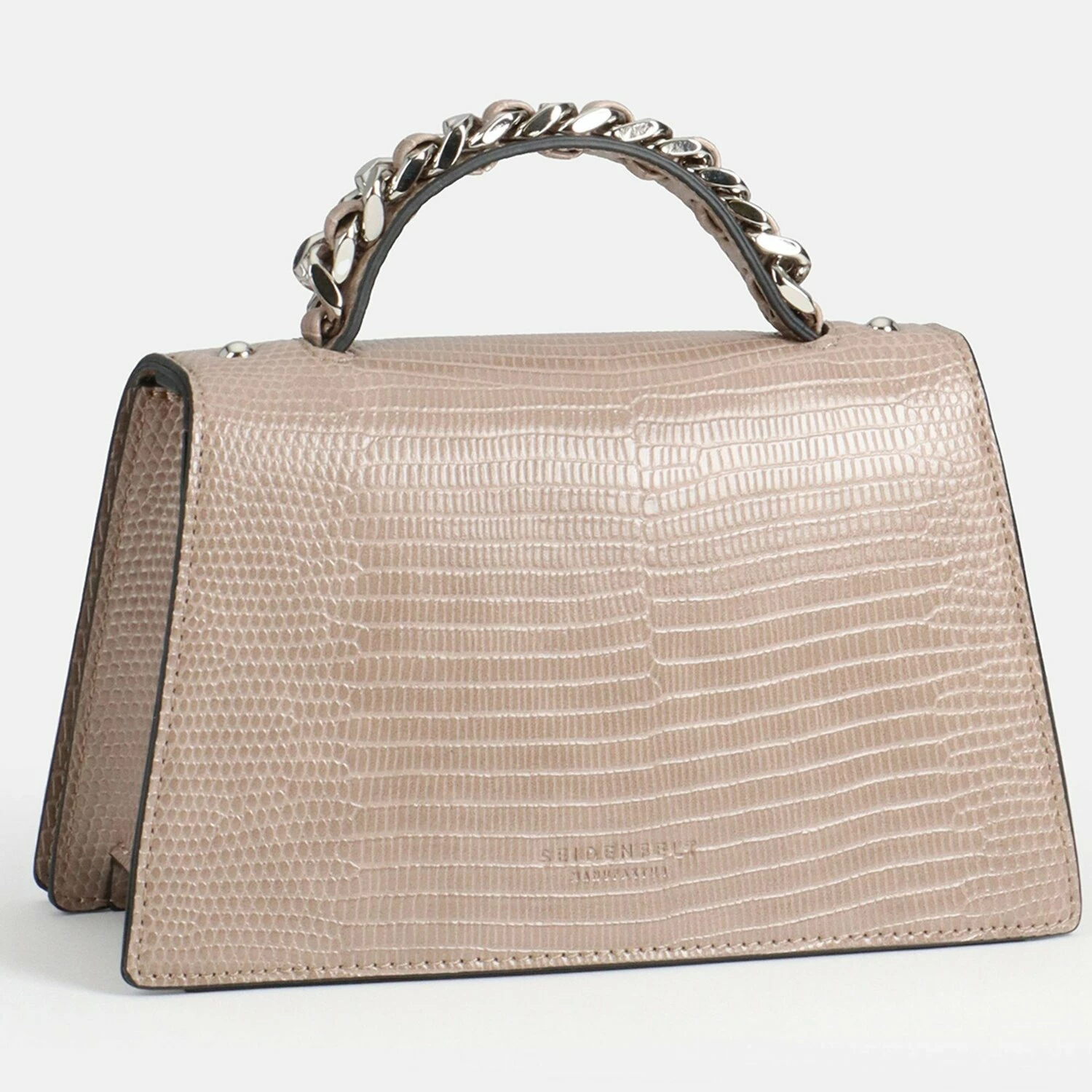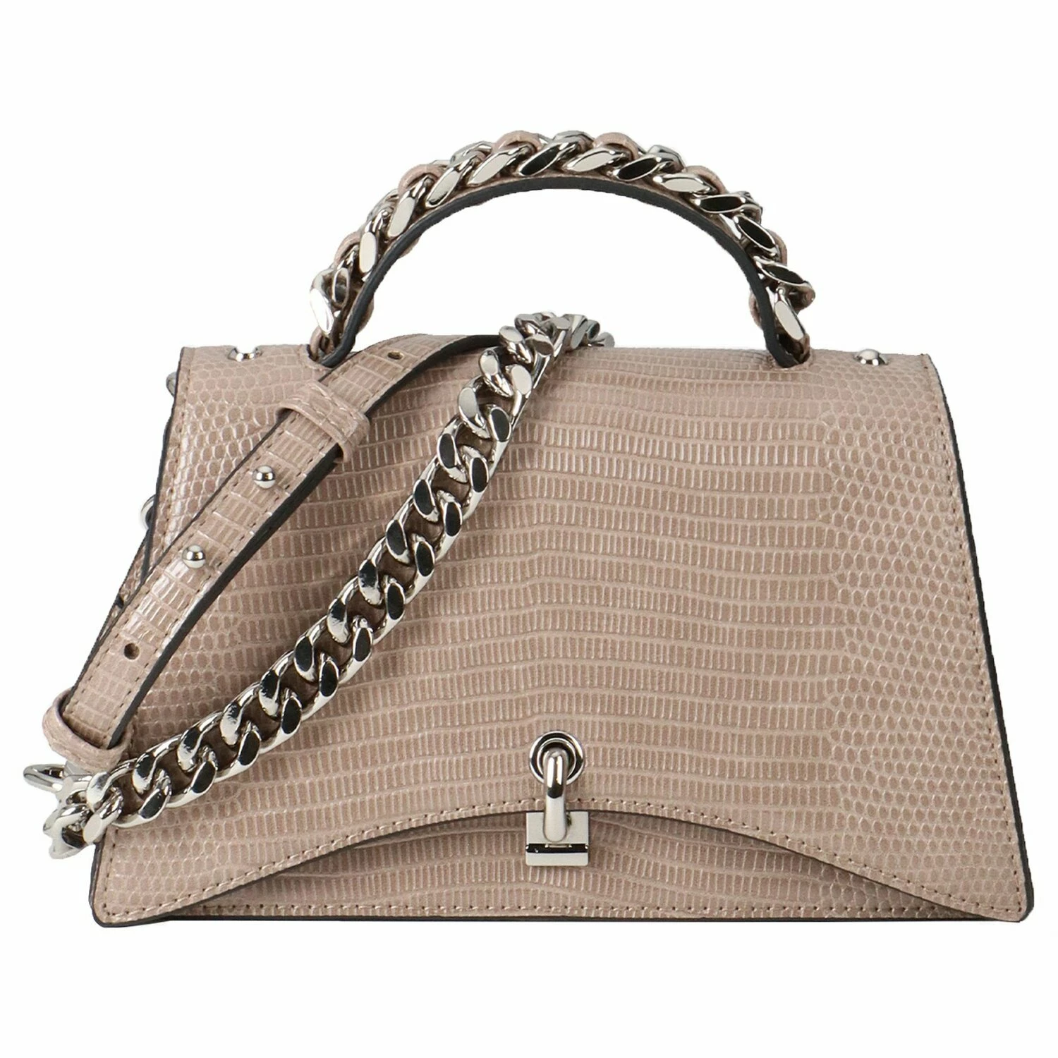 Elegante Handtasche von Seidenfelt im Reptilien-Look und goldfarbigen Elementen. Die Tasche besticht durch ihr modernes, geradliniges Design und die hochwertige Verarbeitung. Sie verfügt über ein geräumiges Hauptfach und bietet genug Platz für ihre Wertsachen. Der perfekte modische Begleiter.
