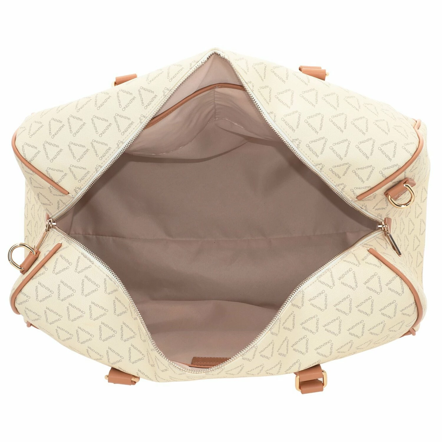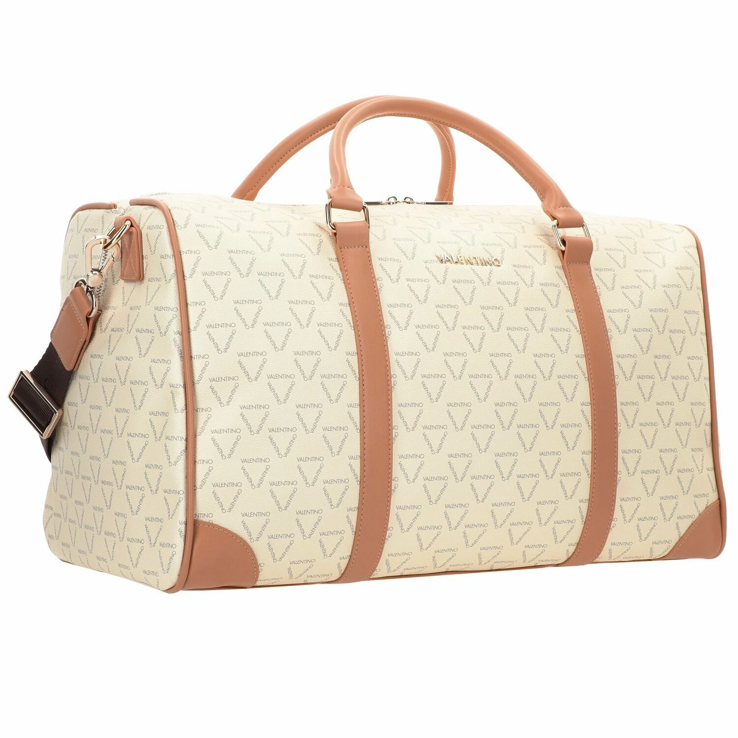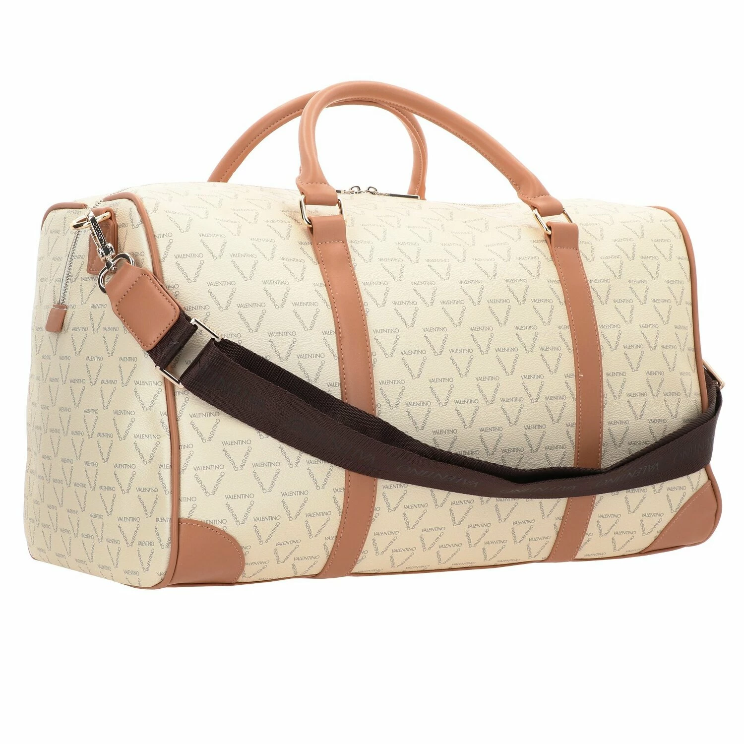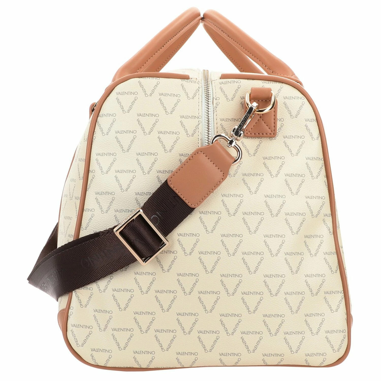 Modisch eleganter Weekender von Valentino. Er besitzt ein geräumiges Hauptfach, das bequem über einen Reißverschluss geschlossen wird und ist durch seinen verstärkten Boden stets standfest und funktionell. Ein praktischer und edler Begleiter für kurze Reisen.