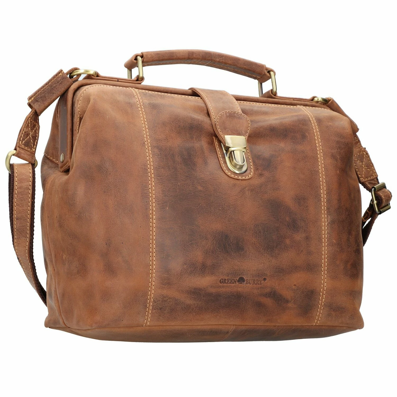 Geräumige und erstklassige Henkeltasche in Form einer Doktortasche aus hochwertigem Leder. Die Handtasche besticht durch ihre hohe Funktionalität und hochwertige Verarbeitung im Used Look. Sie verfügt über ein großes Hauptfach mit einem Handy- und einem Reißverschlussfach, ein weiteres Reißverschlussfach auf der Rückseite sowie einen abnehm- und verstellbaren Umhängeriemen. Dank des schlichten, edlen Designs ist sie sowohl alltags- als auch bürotauglich und ist auch als Doktortasche bestens geeignet.